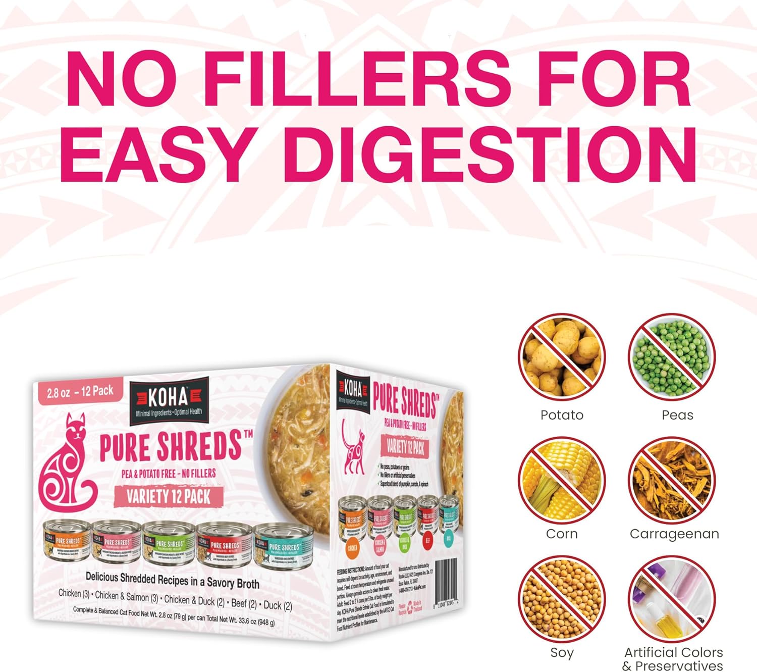 - NO FILLERS: KOHA Pure Shreds are free from fillers like potatoes, peas, corn, soy, or artificial ingredients.