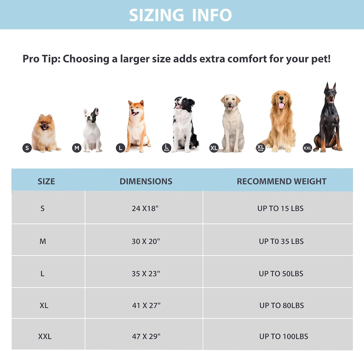 - β Versatile Design - The dog cooling pad mattress design gives your fluffy friend plenty of room to sprawl out and get cozy in any position. Spacious mattress-style bed accommodates all sleeping positions, perfect for home, travel, crates or car rides.