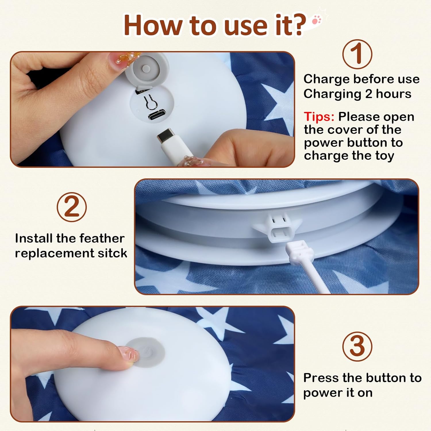 - Three speed modes - slow, fast, and interactive—this feather cat toy adapts to a variety of cat play style and suitable for both solo and group play. Hight support this cat toys for bored indoor adult cats