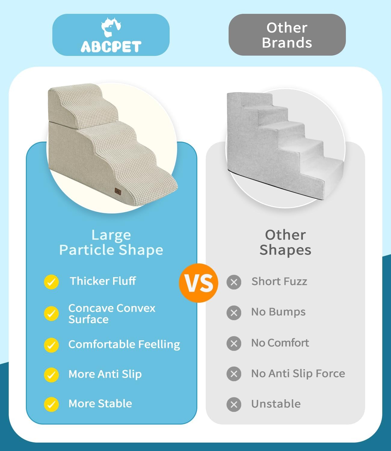 - Stronger Grip Anti-slip- The surface of this dog steps is made of larger fluffy particles. Stronger grip help your pet climbing to high bed or other surface, easily and safely. Combined with antislip bottom, this dog stair maintain stability during pet rushing to prevent pets from slipping.