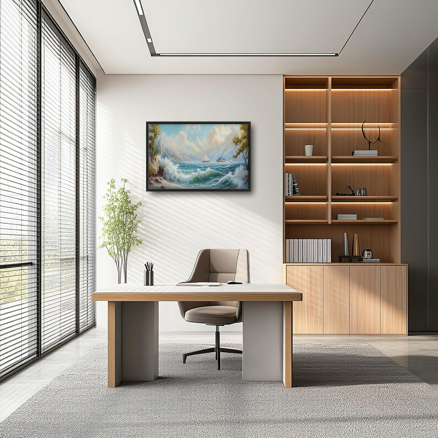 Framed Large Sailboat Wall Art for Living Room, Oversized Sea Coastal Wall Decor Beach Nautical Canvas Painting Seascape Pictures Home Decoration for Living Room Bedroom Office 36"x24"