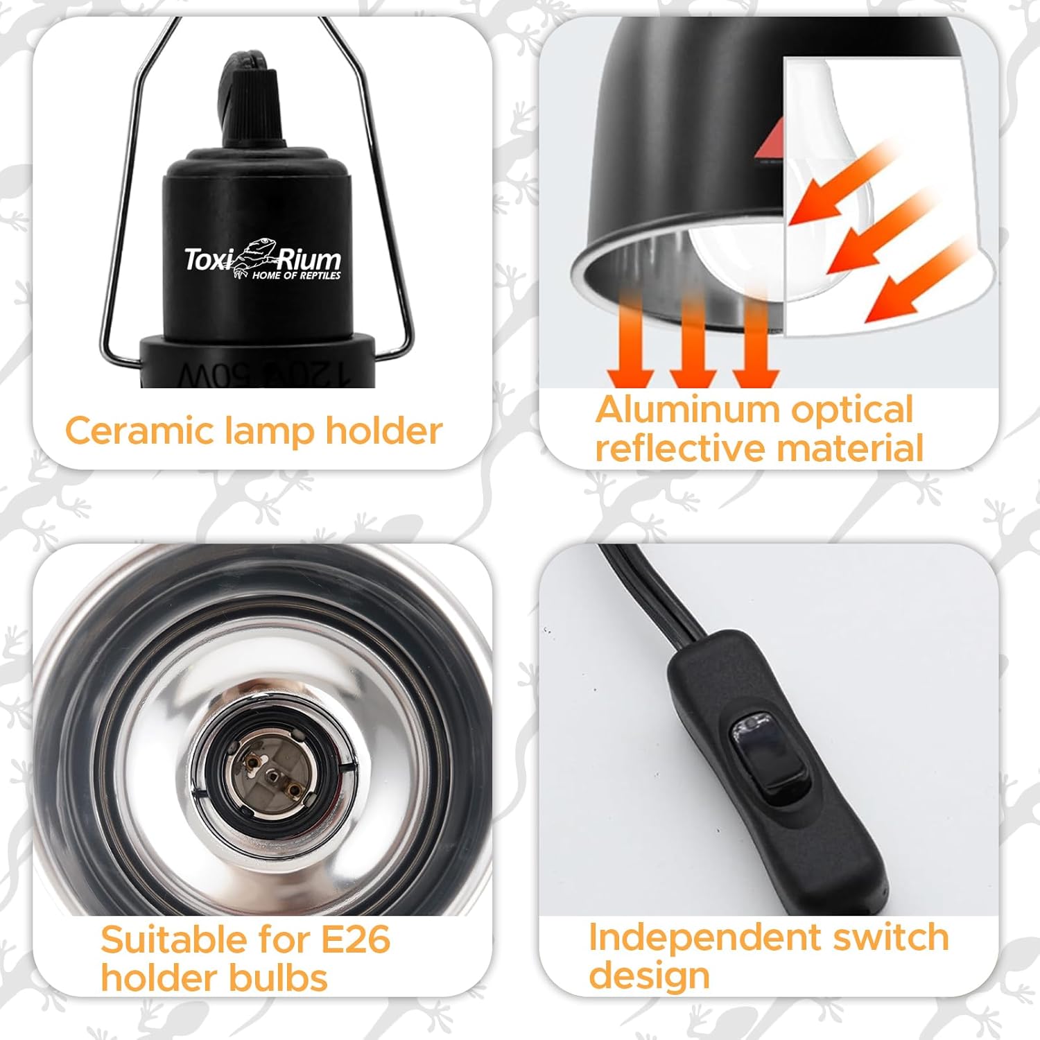 - Built to Last: Equipped with a durable E26 ceramic lamp cap that supports up to 100W, this 2-pack fixture resists heat damage and delivers reliable performance for your enclosure.