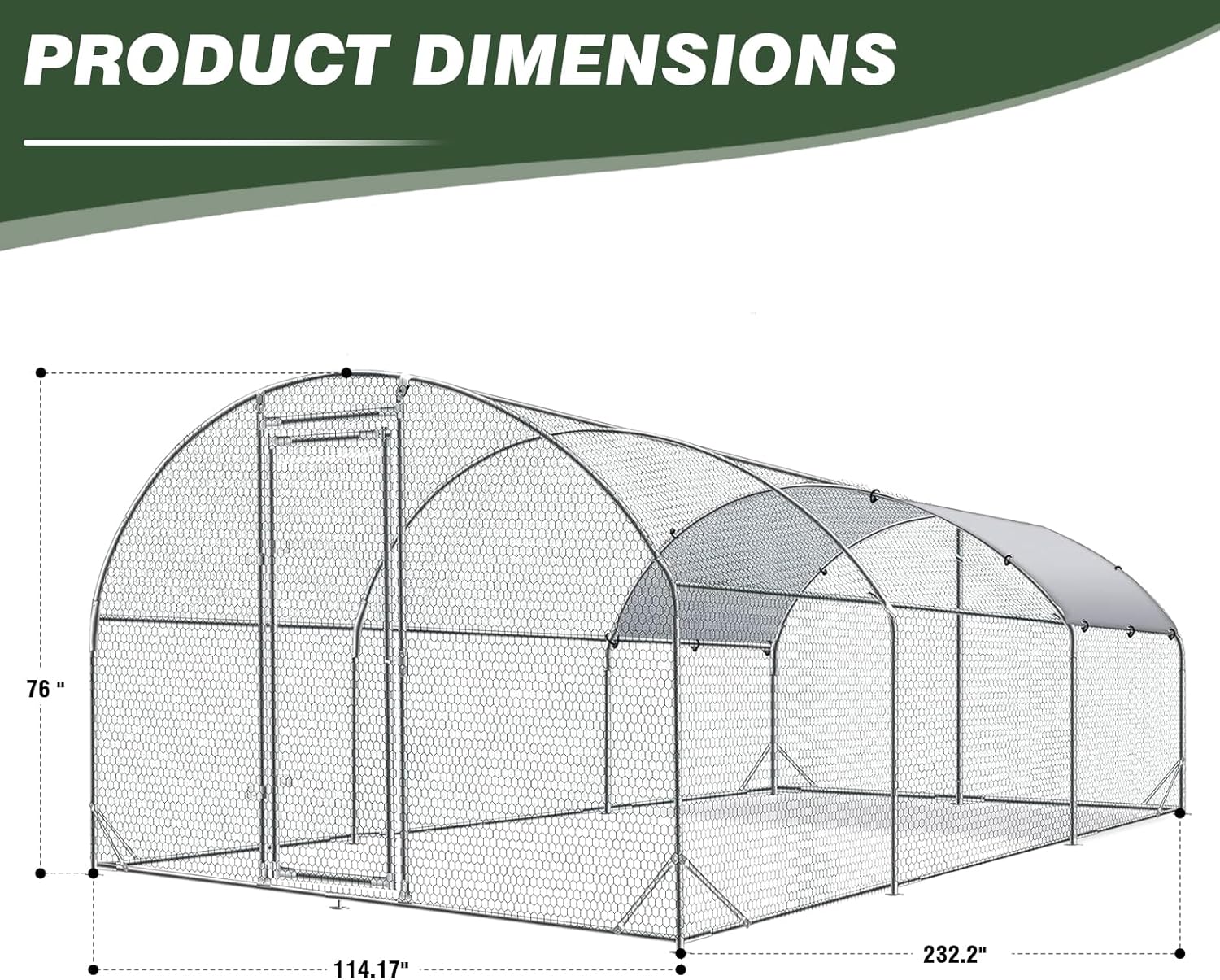 - 【Large Space for 30 Chickens】: The metal chicken coops measures 9.5'W x 19.3'L x 6.3'H and can accommodate around 20-30 chickens at a time. 6.4' height provides plenty of space for chickens to move around during the day