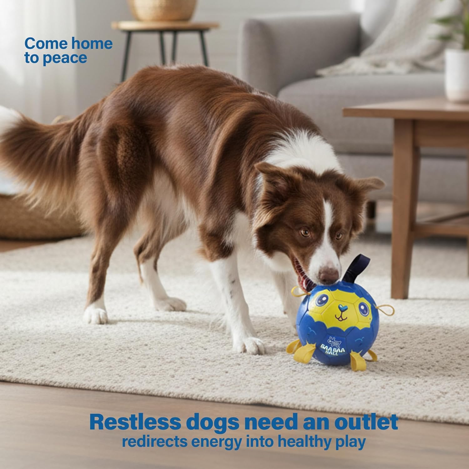 Race&Herd 6" Jolly Soccer Ball for Dogs - Tough Durable Dog Ball Toy with Straps, Pet Bouncy Herding Balls for Dogs, Floating Dog Balls with Tags for Water Fetch (BaaBaaBall, Baby Sheep)