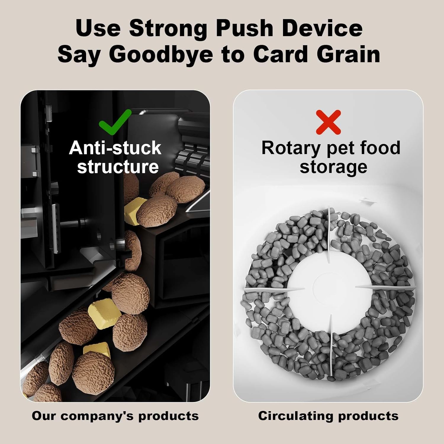 - [Dual Power & Smart Alerts] "USB/battery (battery not included) dual-mode power ensures 24/7 reliable operation. Infrared sensors automatically detect food jams/low levels and send instant app alerts. Compatible with 2-15mm dry kibble (not suitable for wet food).