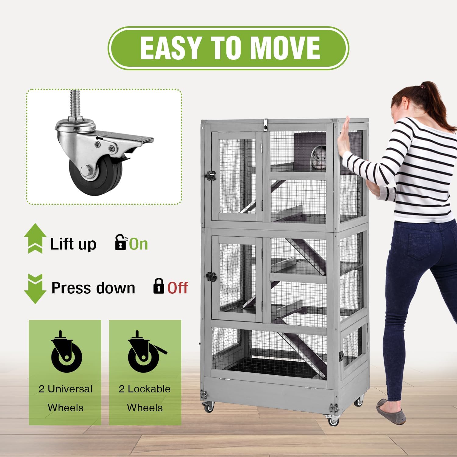 - 【5 Levels Space of Ferret Cages】🚪Extra Large Space: 27.6"L × 20"W × 55.2"H. The small animal cage with five climb-up ramps and hut, your little animal friends will have five times the fun. and five doors of the squirrel cage can be opened for easy catching, and observed pets also keep the air circulating.Perfect for adult small pets like guinea pigs, squirrels, chinchillas, ferrets, rabbits, hedgehogs, etc.