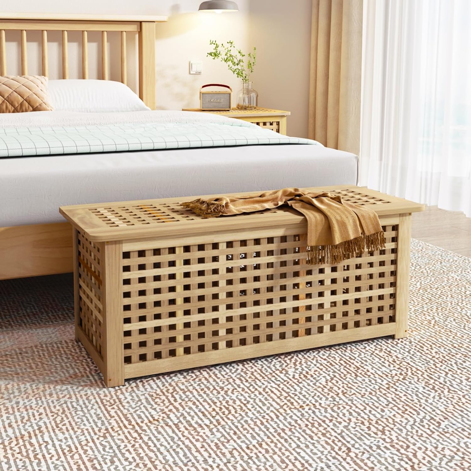 - Fits Any Room, Matches Any Style:With its classic grid design and natural acacia wood finish, this bench with storage blends seamlessly into any home decor. Whether you need a storage bench for your entryway, bedroom, living room, or bathroom, itâs as stylish as it is functional.