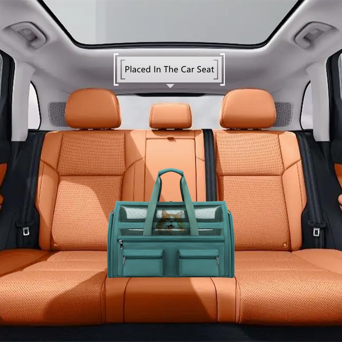 - [AIRLINE APPROVED] This cat carrier is designed with airline approved, it can fit comfortably under most flight seats, we can take our pets wherever we want. Dog travel carrier offers two attachment loop handles that can be used as a dual harness or as a luggage strap for balanced carry and secure transport.