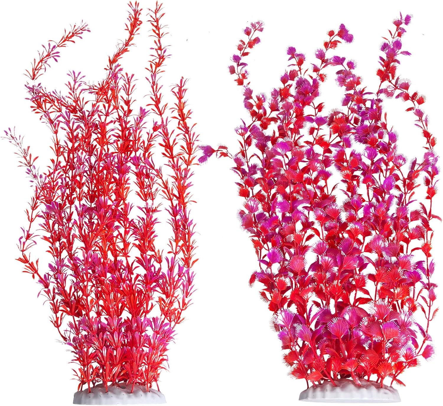 Hamiledyi Aquarium Plastic Plants Aquarium Decor Artificial Fish Tank Plants,Tall Fish Tank Decorations, Extra Large Aquarium Plant 23.6-inch Tall,2PCS(Red)