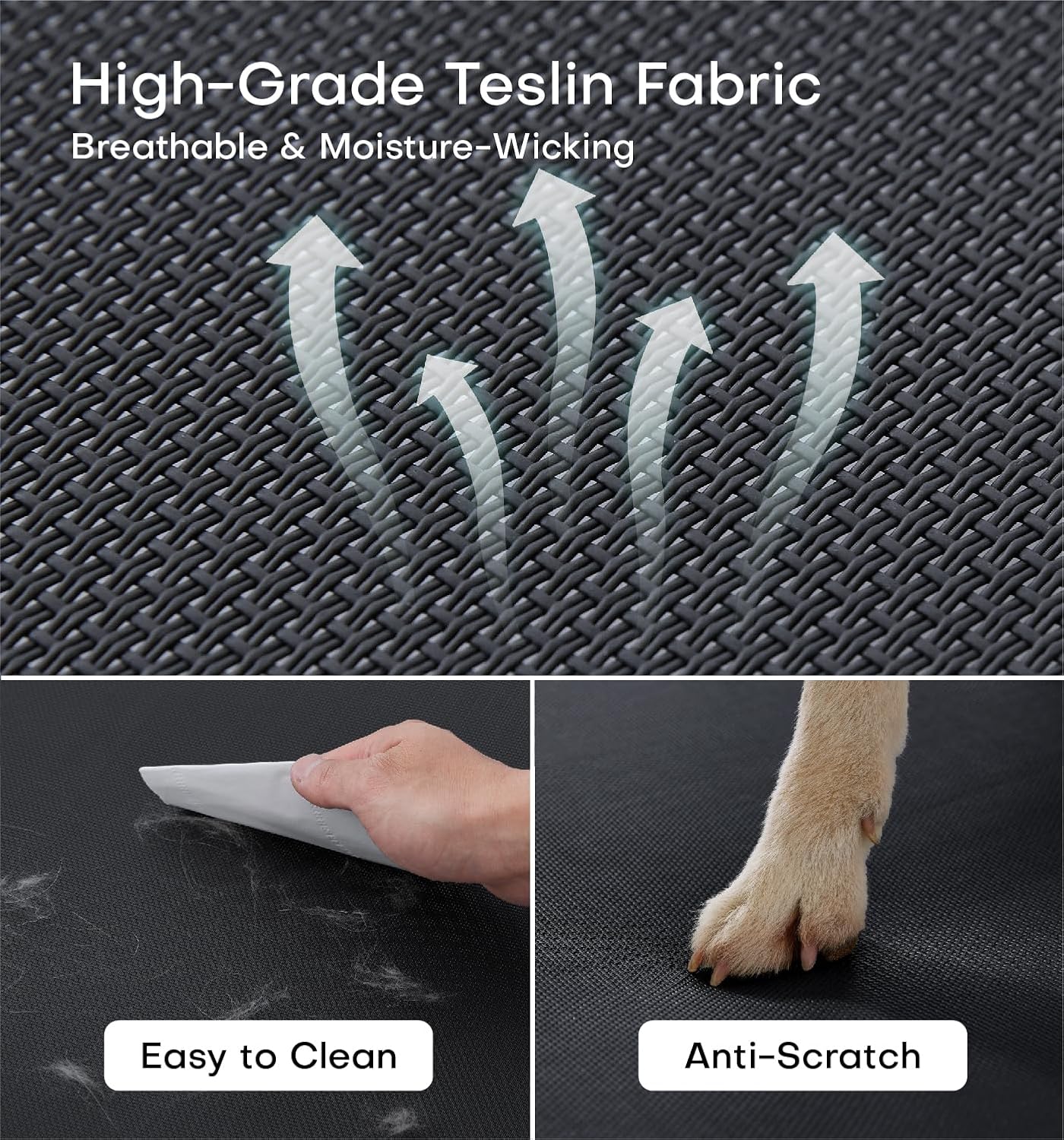 - Easy to Clean & Maintain - The heavy-duty Teslin mesh fabric repels dirt, moisture, and odors. Just hose it down or wipe it clean. This portable dog bed is made for real-life messes—from muddy paws to fur shedding—and dries quickly for the next adventure