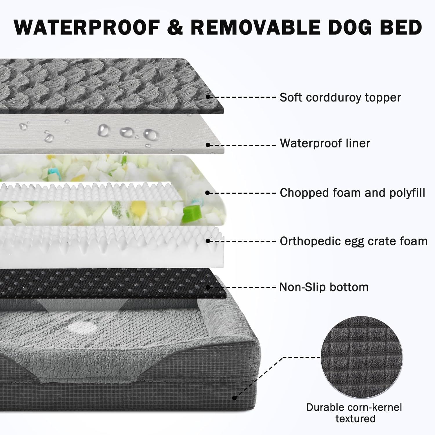 INVENHO Orthopedic Extra Large Dog Bed, XXL Waterproof Egg-Crate Memory Foam Dog Couch Bed with Washable Removable Cover, Waterproof Lining and Nonskid Bottom