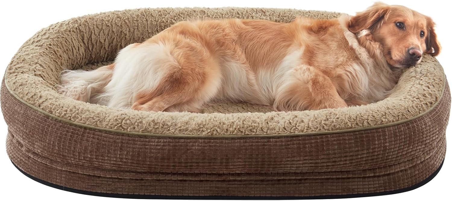 JOEJOY Orthopedic Dog Beds Large Sized Dog, XL Egg-Crate Memory Foam Pet Couch Bed with Bolster Sides, Waterproof Lining, Removable Washable Cover & Non-Slip Bottom, Brown