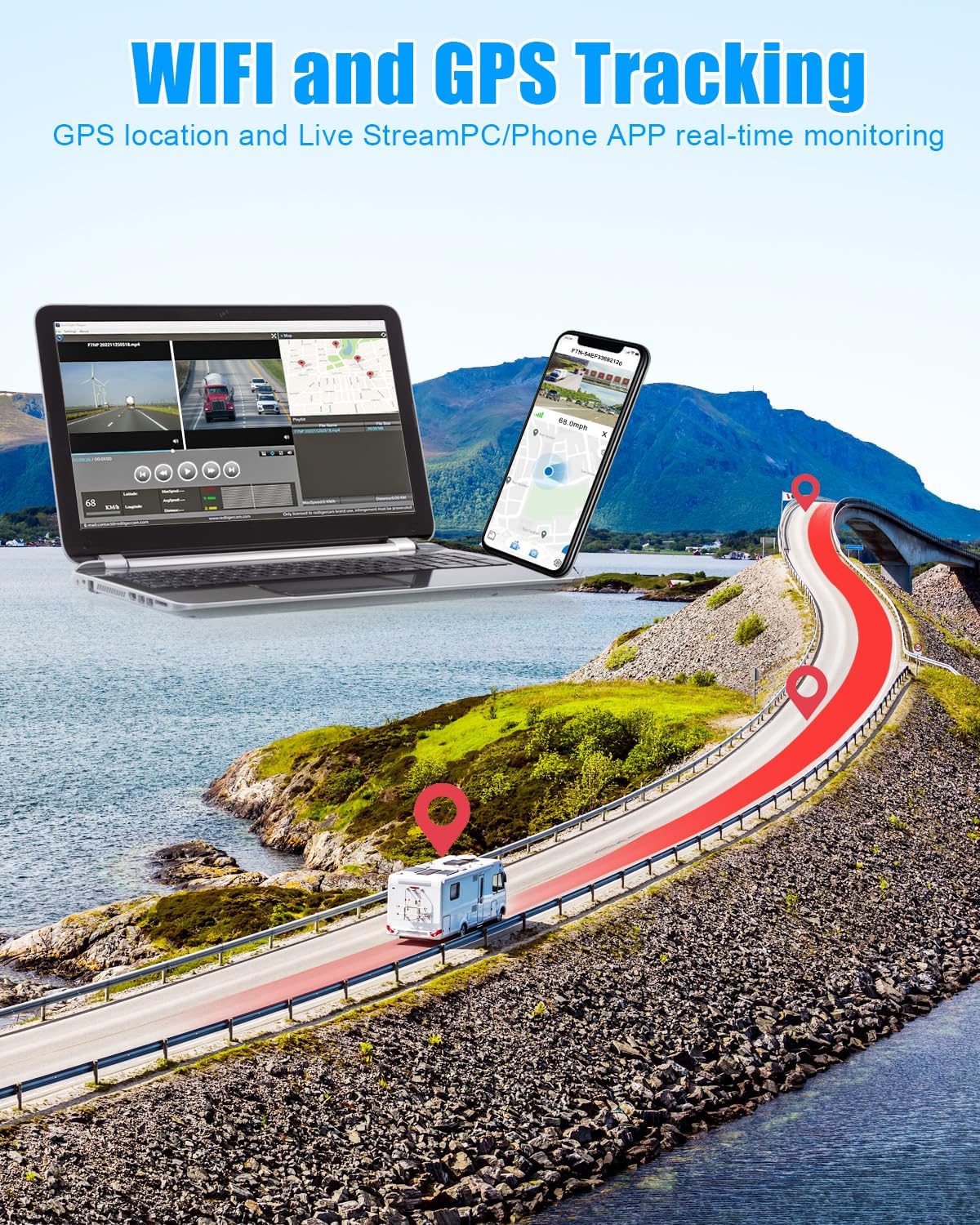 - 【Live Video Remote Monitoring 】The monitor connects to a WiFi hotspot in the vehicle, enabling remote live viewing and convenient preview on PC, iOS, and Android smartphones. Let loved ones monitor your vehicle's surroundings remotely when you're on road trips – no more "Are you safe?" texts