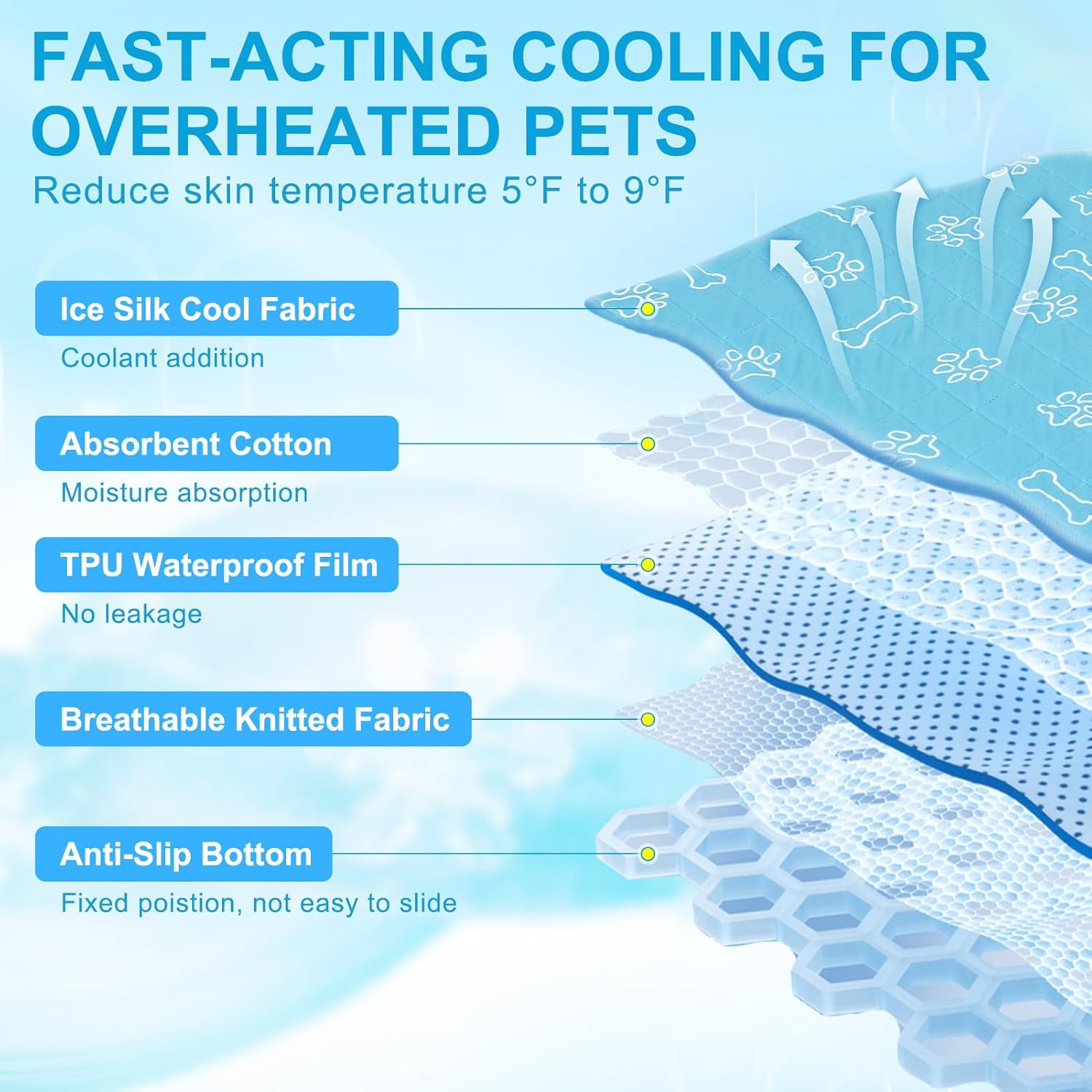 BEAUTYZOO Upgraded Dog Self Cooling Mat Ice Silk Chill Pads for Small Medium Large Dogs Q-MAX>0.43- Summer Reusable Pet Training Pad - Absorbent Non-Slip Cool Mat for Kennels, Crates, Beds, 22" x 28"