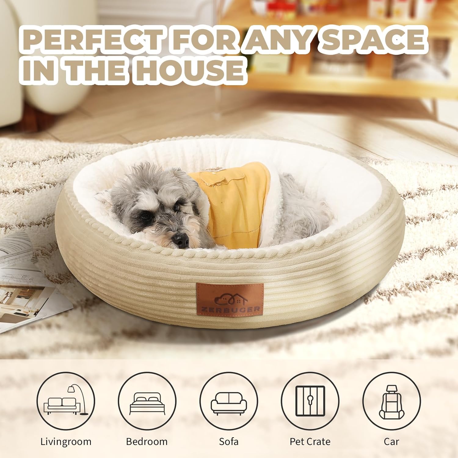 - COZY DONUT PET BED:The round pet bed allows your cute animal friends to have their own space, a place where they can curl up and relax. The raised edges create a sense of security and provide soft support for your pet's head and neck, which can relieve muscle and joint pain. This donut pet bed is ideal for animal friends who like to curl up.