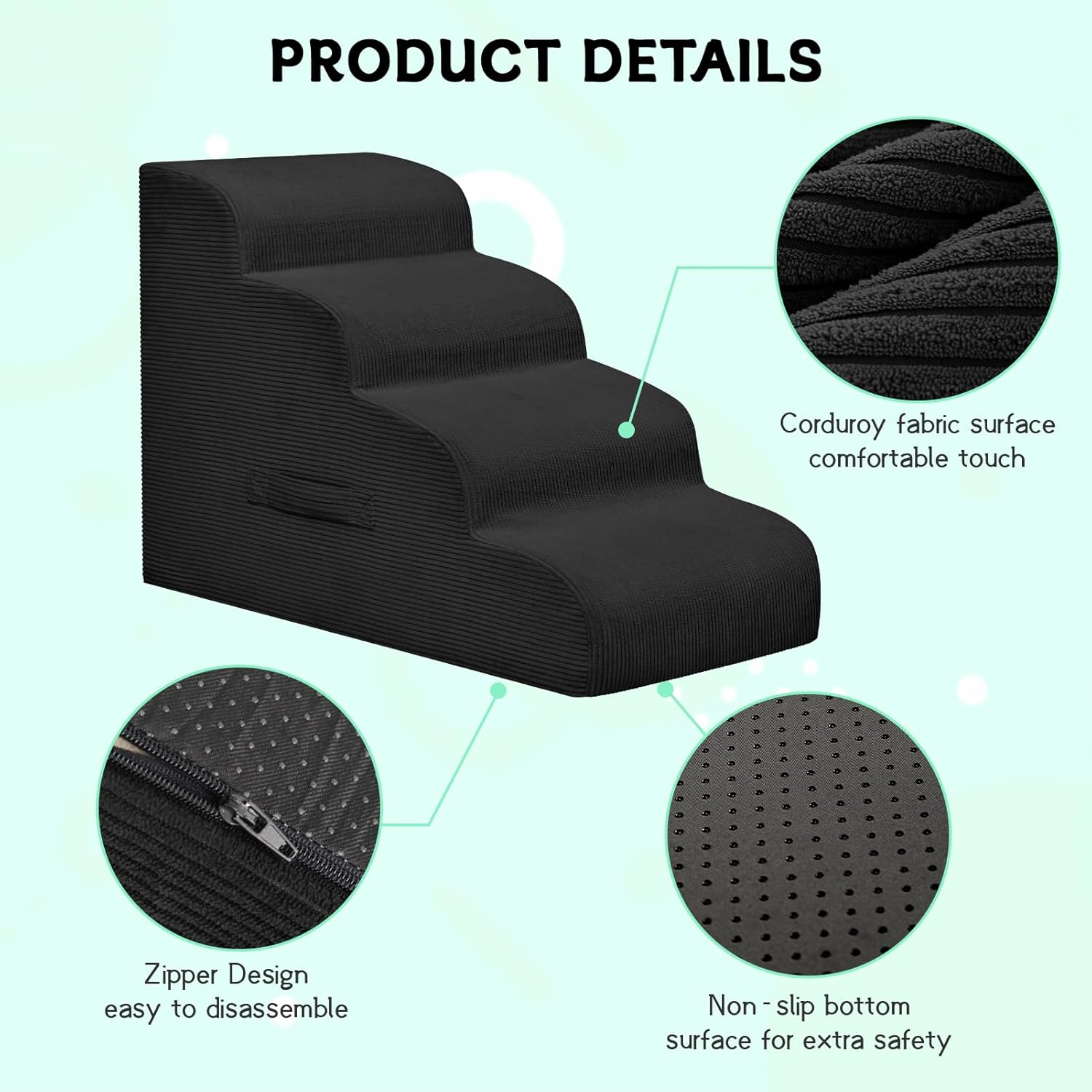 Dog Steps for Small Dogs, 4-Step Pet Ramp Stairs for High Beds and Sofa, Non-Slip Pet Stairs for Small Dogs and Cats, Removable and Easy to Clean Cover, Black