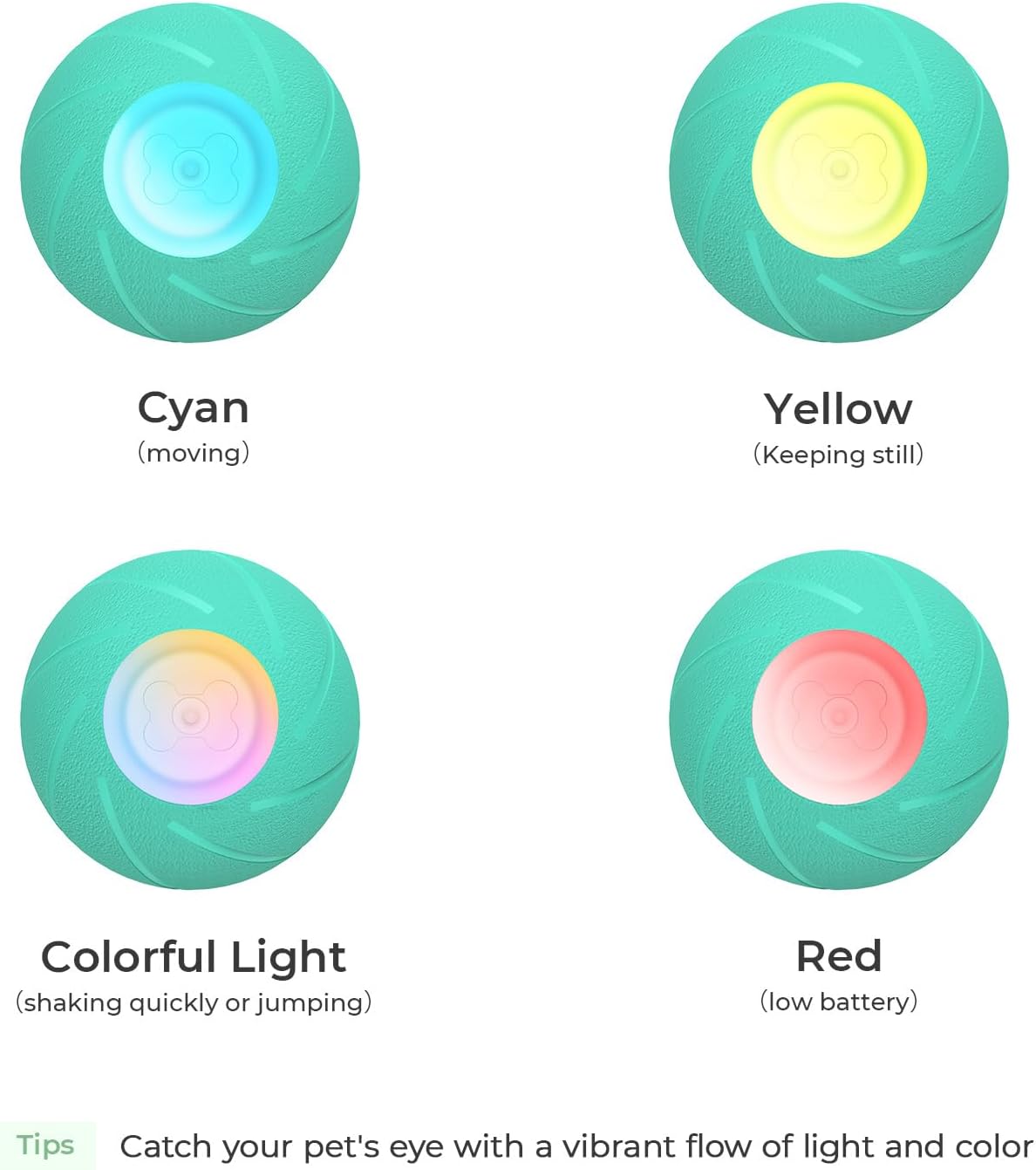 - 【Warming Tips】To prevent dogs from accidentally touching the button, thus it takes a slightly stronger strength to press it. It is recommended that you hold the ball with both hands, placing both knuckles on the button to press it over 3 seconds.