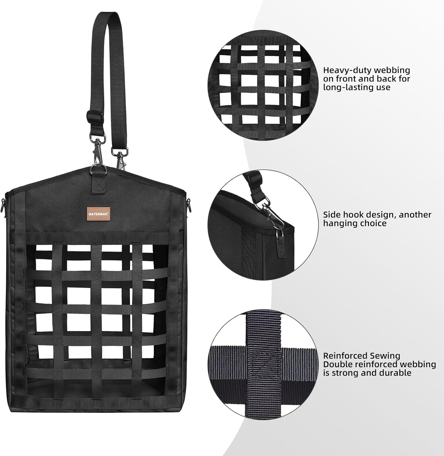 - Built Tough to Last:Made with reinforced nylon webbing, our hay bag is stronger than standard nets. The durable weave keeps hay fresh while letting dust and debris fall away—so your horse gets clean, waste-free forage.