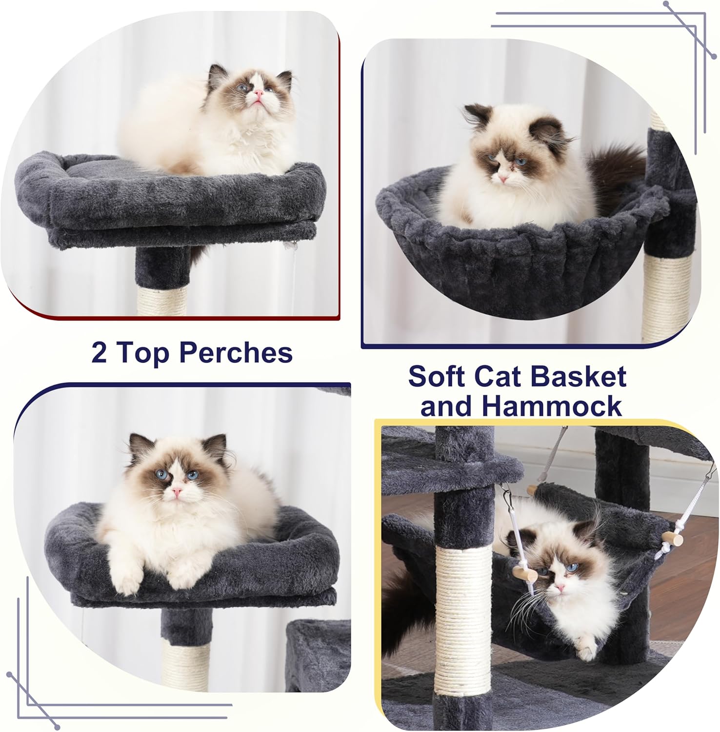- Multi-level Tall Cat Tree: The design of two independent sisal scratching boards and the platform design for each layer make this cat tree have distinct layers and a reasonable structure. Even kittens and senior cats can climb it with ease.