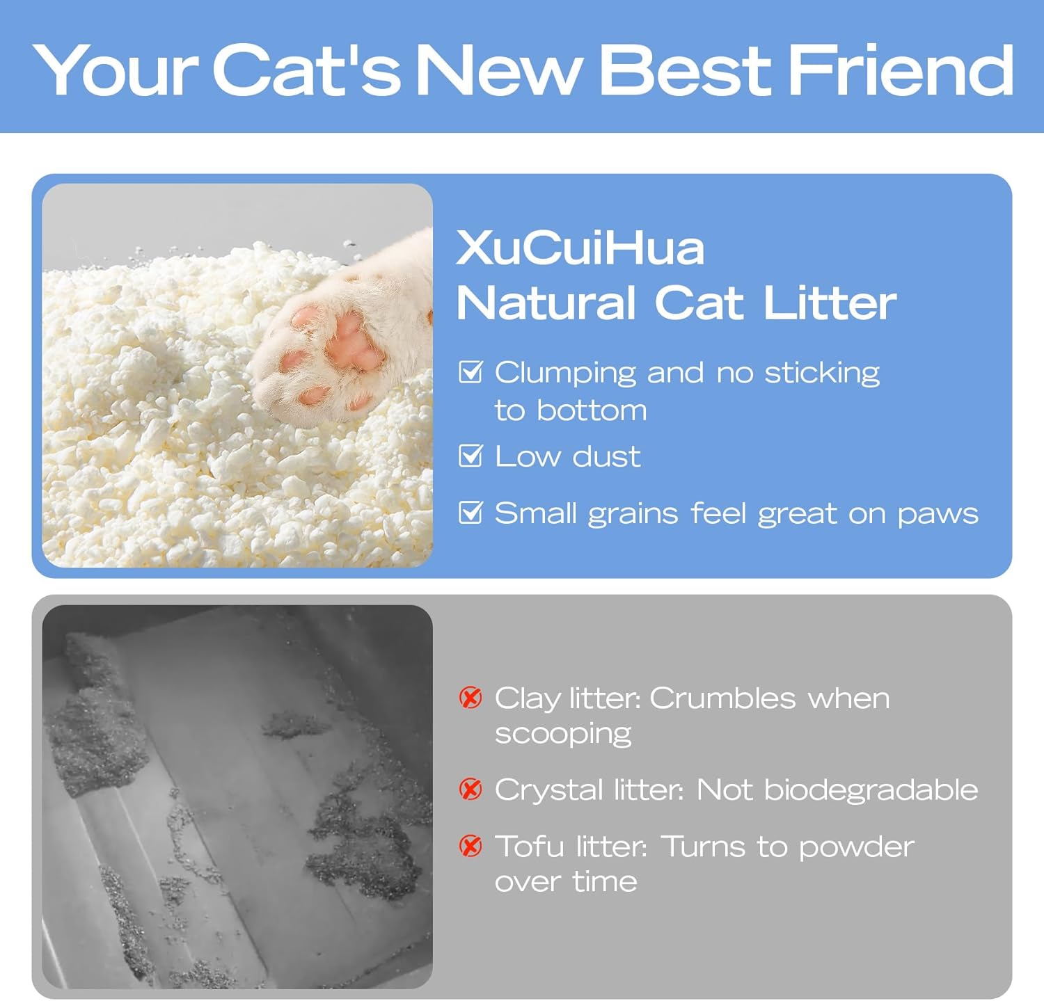 - 100% PLANT INGREDIENTS: Made from natural cassava and corn starch with no added chemicals or fragrances. This plant cat litter is safe for cats, safe for the environmentâbiodegradable and compostable.