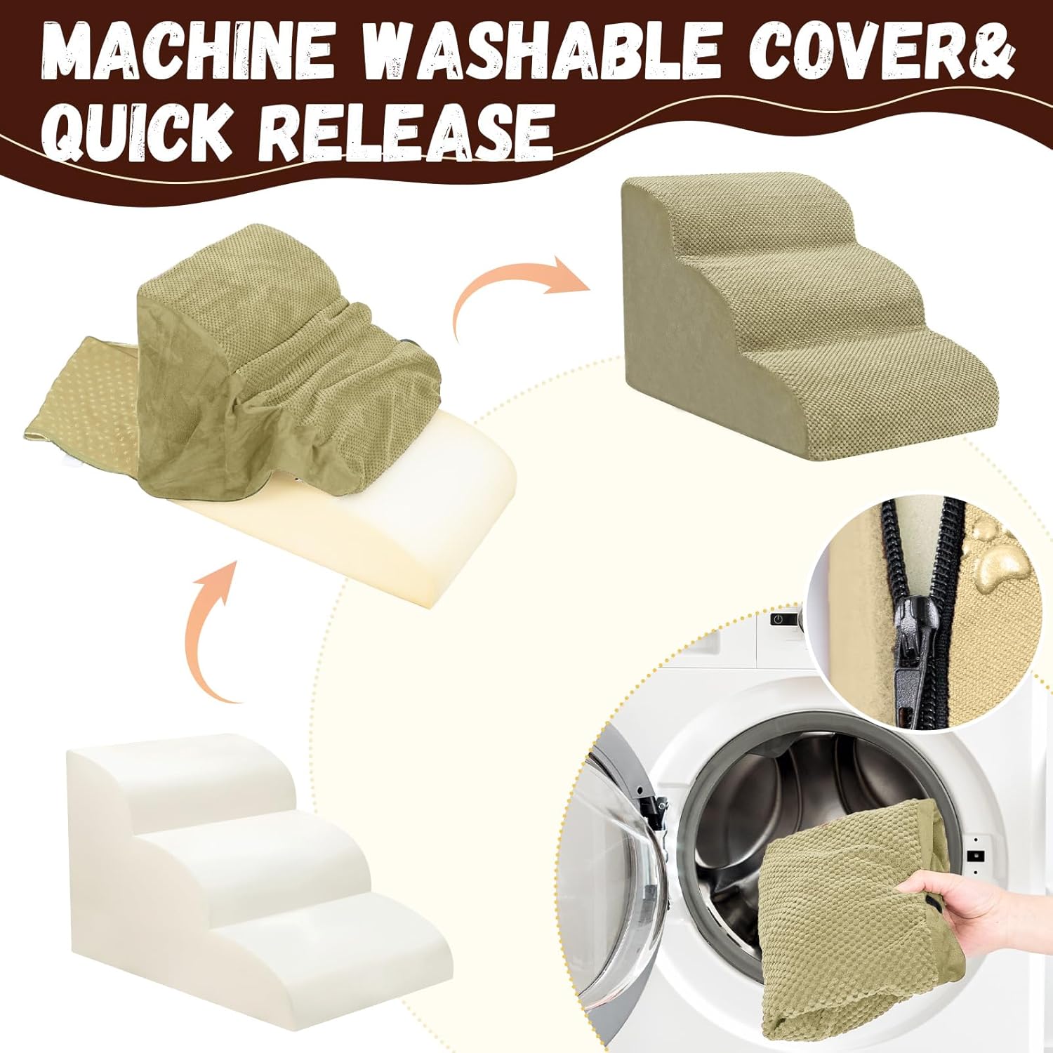 - Double Sided Anti Slip: The dog steps cover is made of corduroy with greater friction than other fabrics, which provides extra grip while in use, the bottom features nonslip rubber dots, preventing pets from sliding while climbing, providing pets with double safety protection
