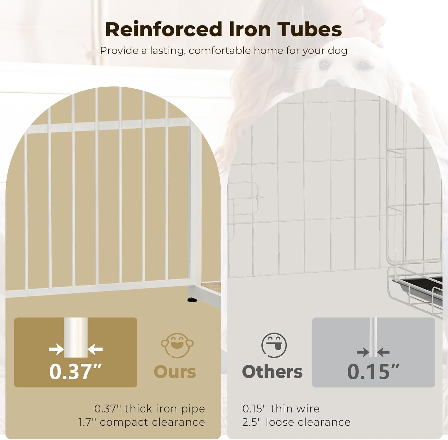 - 【Sturdy and Chew-Resistant】This xl dog cage furniture is made of premium particle board and iron pipe, which is stronger and more chewy; It will accompany your dog throughout the growing stages; It's an ideal gift for your dog