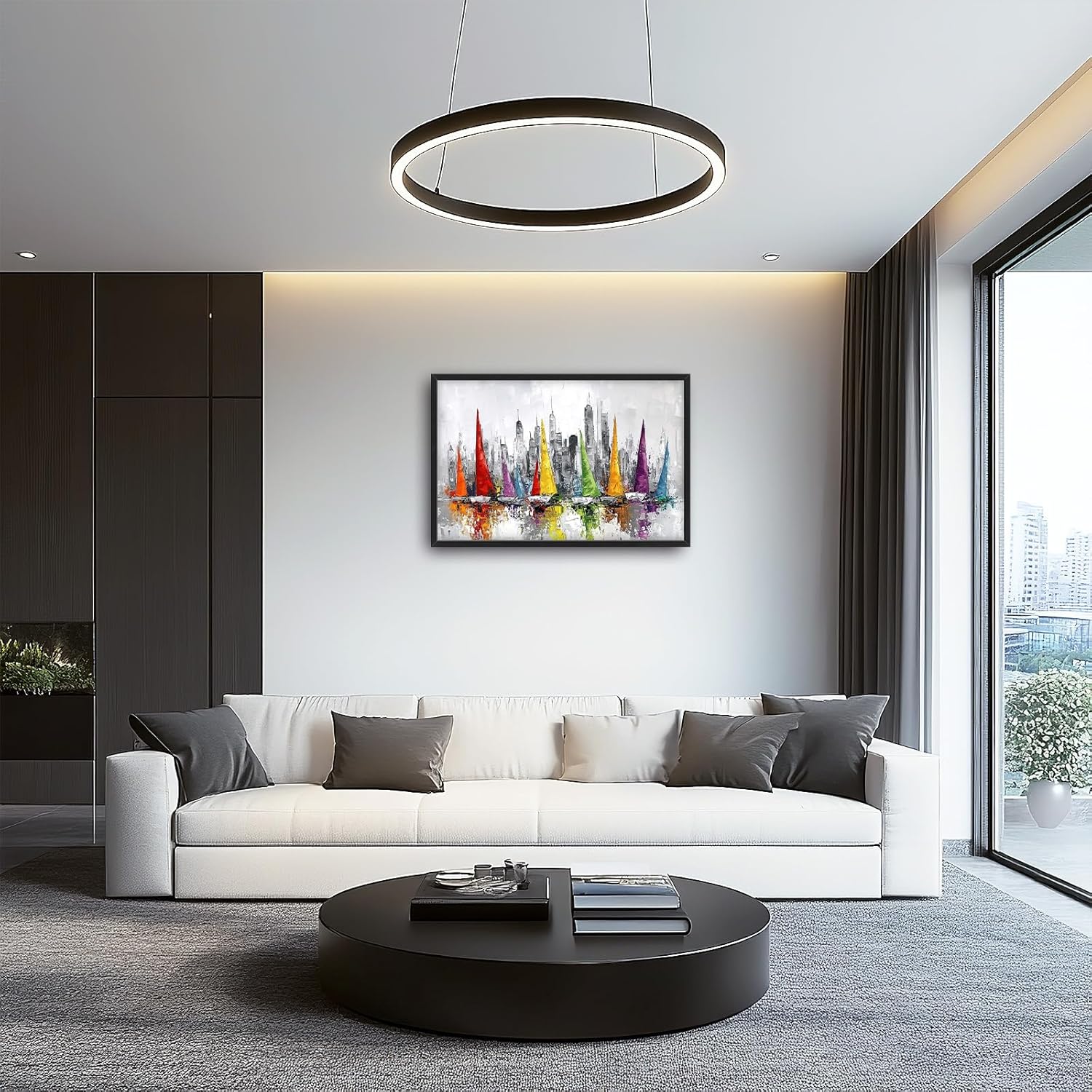 Framed Large Sailboat Wall Art for Living Room, Oversized Abstract City Wall Decor Colorful Sailboat Canvas Painting Pictures Modern Artwork for Living Room Bedroom Office Dinging Room 36"x24"