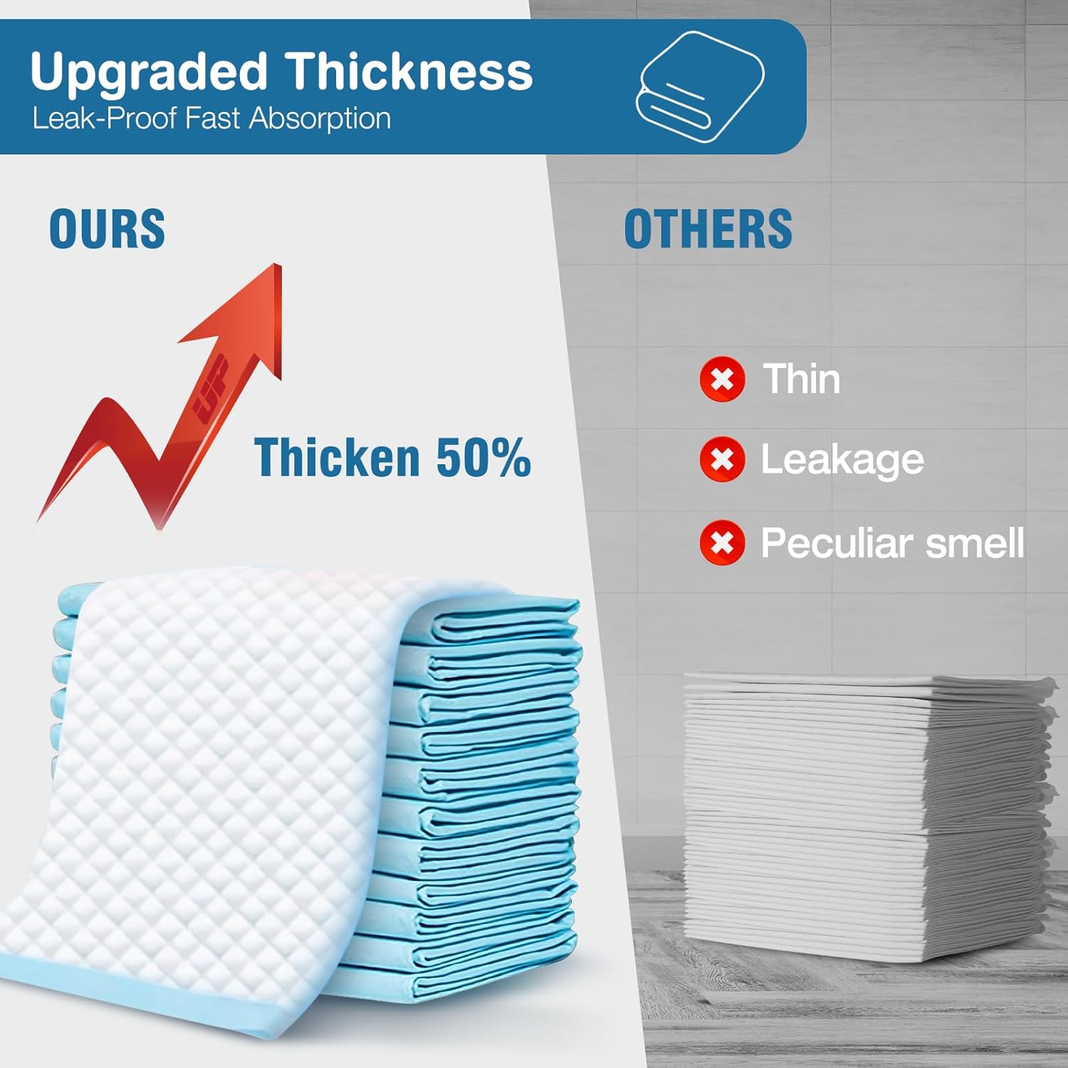 - 【MORE TEAR-RESISTANT】Thick & Durable Material MORE TEAR-RESISTANT - Compared to the traditional disposable puppy pee pads, we have innovated to add a tear resistant layer to the bottom, making the dog pee pads more durable, provide better protection for your floor.