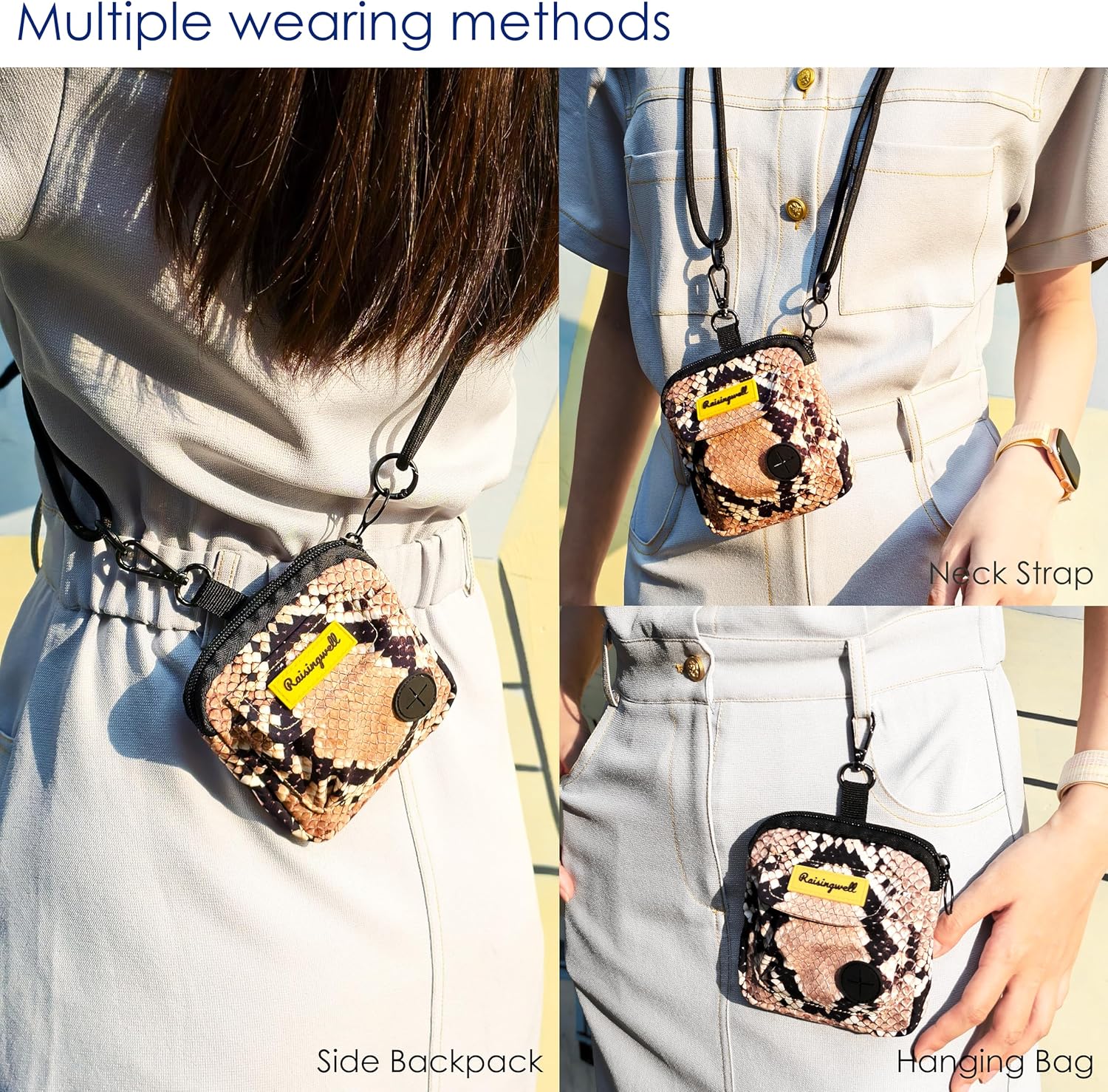 - 3、Durable Tech Material: Raisingwell's dog treat training pouchis made from durable, washable, and non-toxic fabric. Notably, its waterproof lining solves the problem of difficult-to-clean interiors of training bags.