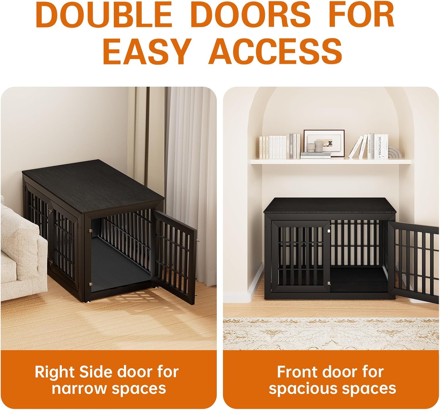 - 【Double Doors Design】The dog kennel furniture has a front door and a side door, your pet will go in and out easily with double doors. The double-doors design can adapt to more different space environments. You can decide whether to open the front door or the side door according to your needs.