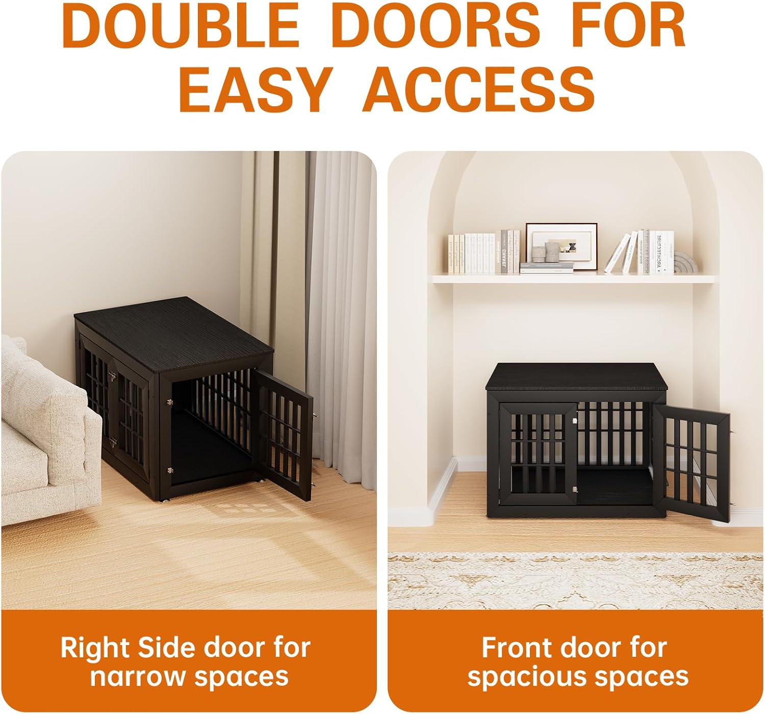 - 【Double Doors Design】The dog kennel furniture has a front door and a side door, your pet will go in and out easily with double doors. The double-doors design can adapt to more different space environments. You can decide whether to open the front door or the side door according to your needs.