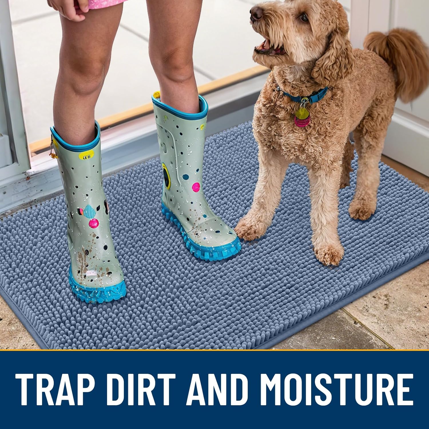 Smiry Dog Door Mat for Muddy Paws 36x24, Absorbs Moisture and Dirt Doormat, Non-Slip Washable Quick Dry Chenille Front Door Mat Indoor Entrance, Entryway Carpet for Inside Floor, Airy Blue