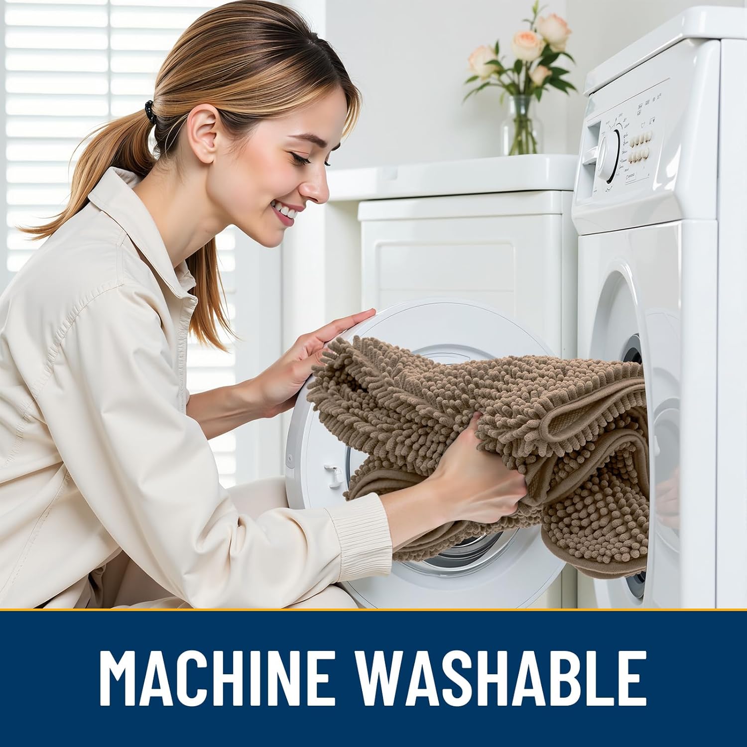 Smiry Dog Door Mat for Muddy Paws 36x24, Absorbs Moisture and Dirt Doormat, Non-Slip Washable Quick Dry Chenille Front Door Mat Indoor Entrance, Entryway Carpet for Inside Floor, Camel