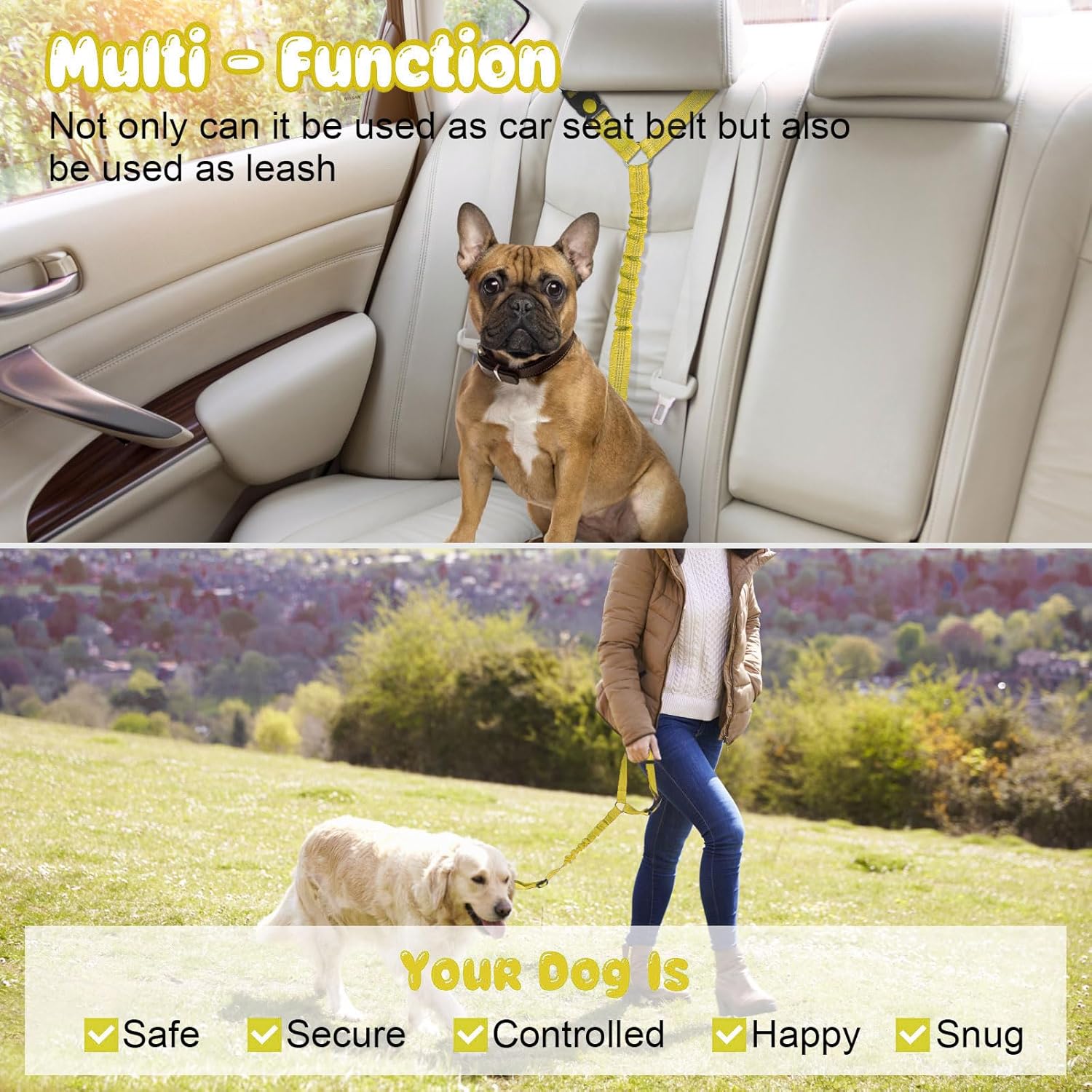 - PRACTICABILITY: Our durable leash Not only can use for car ,but also can be converted to a traditional hand-held leash whenever you need. In addition,It is easy to have the pets secured to a tree or other strong post to keep pets safe when you need.