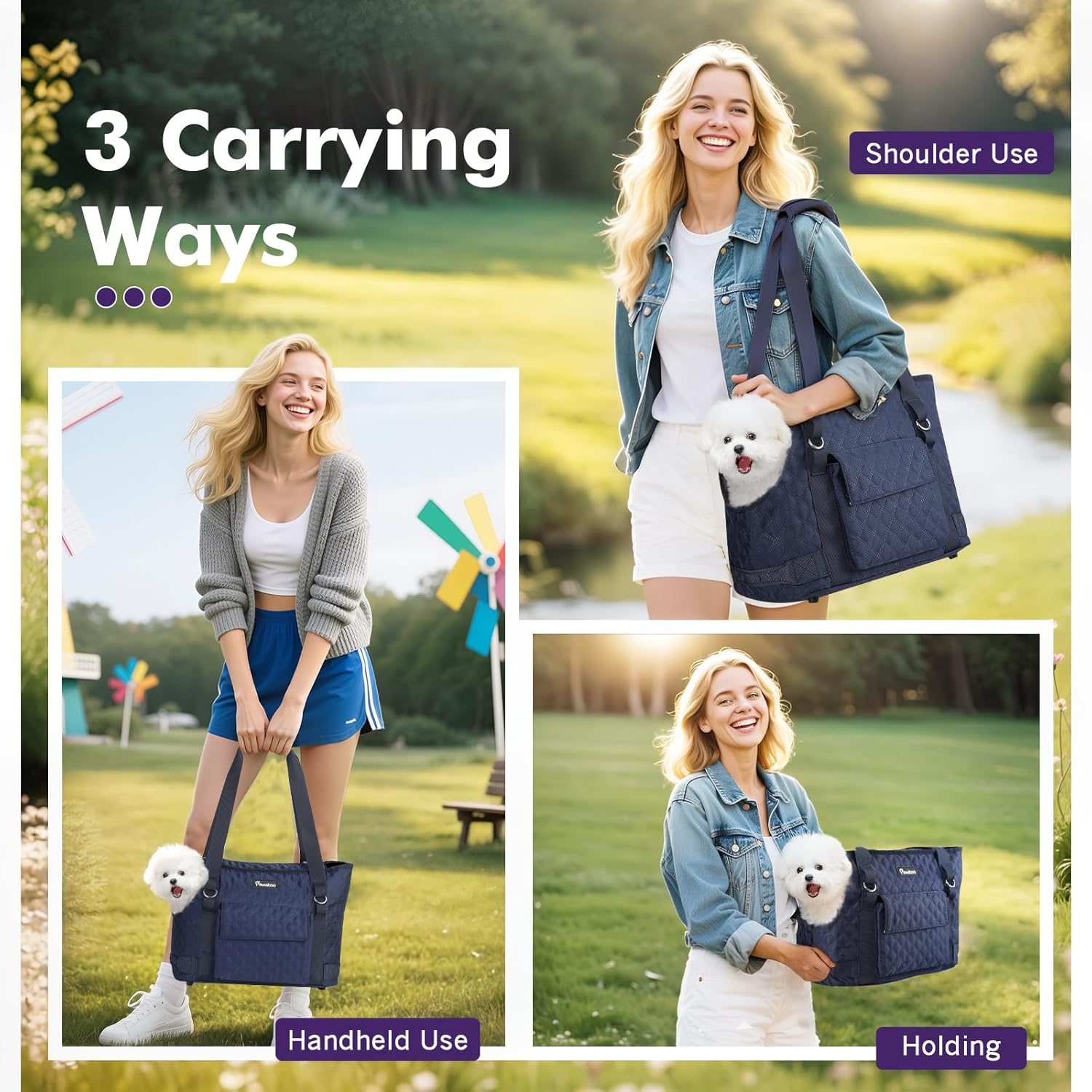 Pawaboo Dog Purse Carrier for Small Dogs with Pocket, Lightweight Dogs and Puppies Tote Bag Carrier, Dog Carriers Soft Sided for Puppy Cat Rabbit, Shopping Travel Puppy Carriers Under 11 LBS,Navy Blue