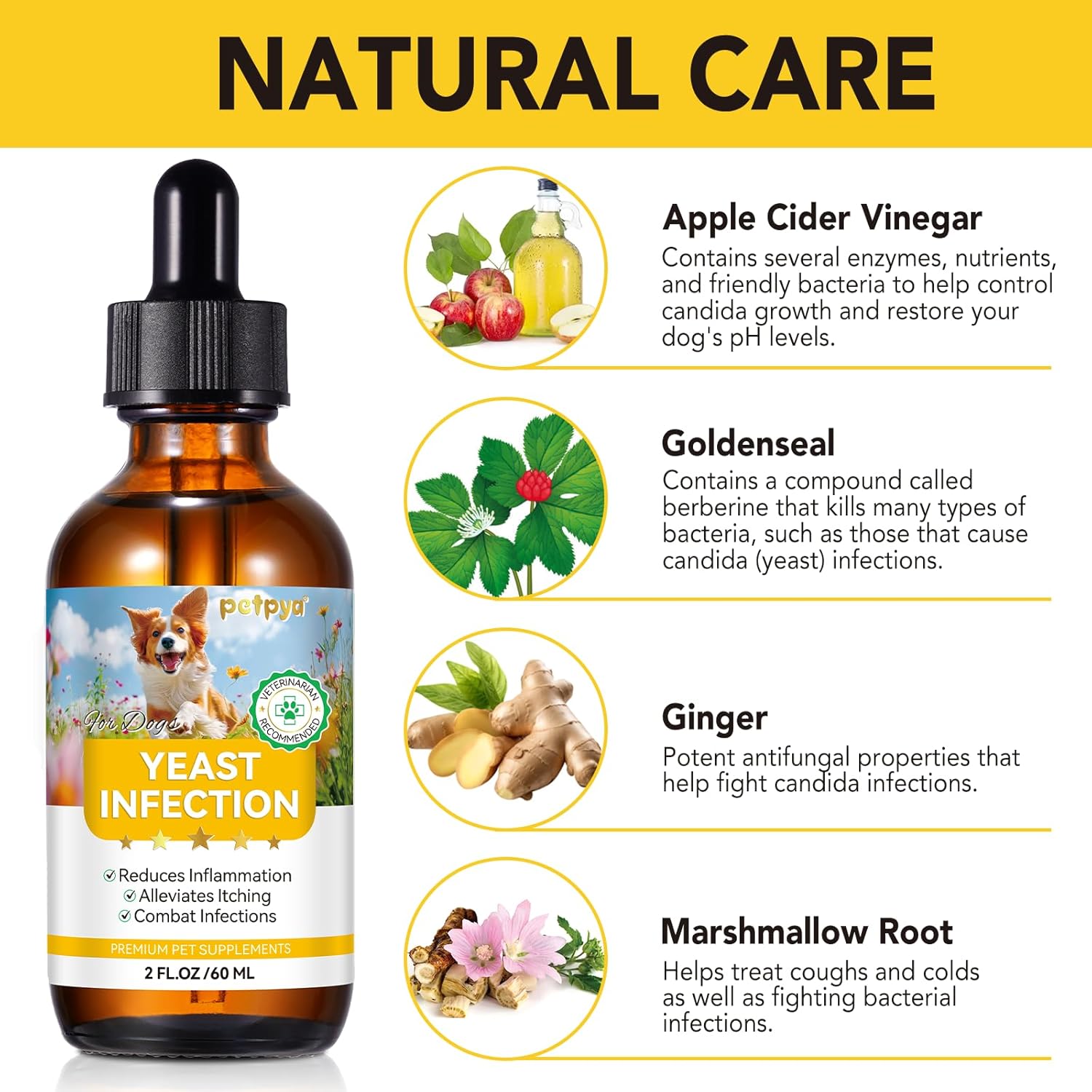 Yeast Infection Treatment for Dogs, Natural Yeast Infection Treatment Drops for Dog Itch Relief, Dog Allergy Relief, Dog Yeast Ear Infection Treatment, 2.02fl.oz