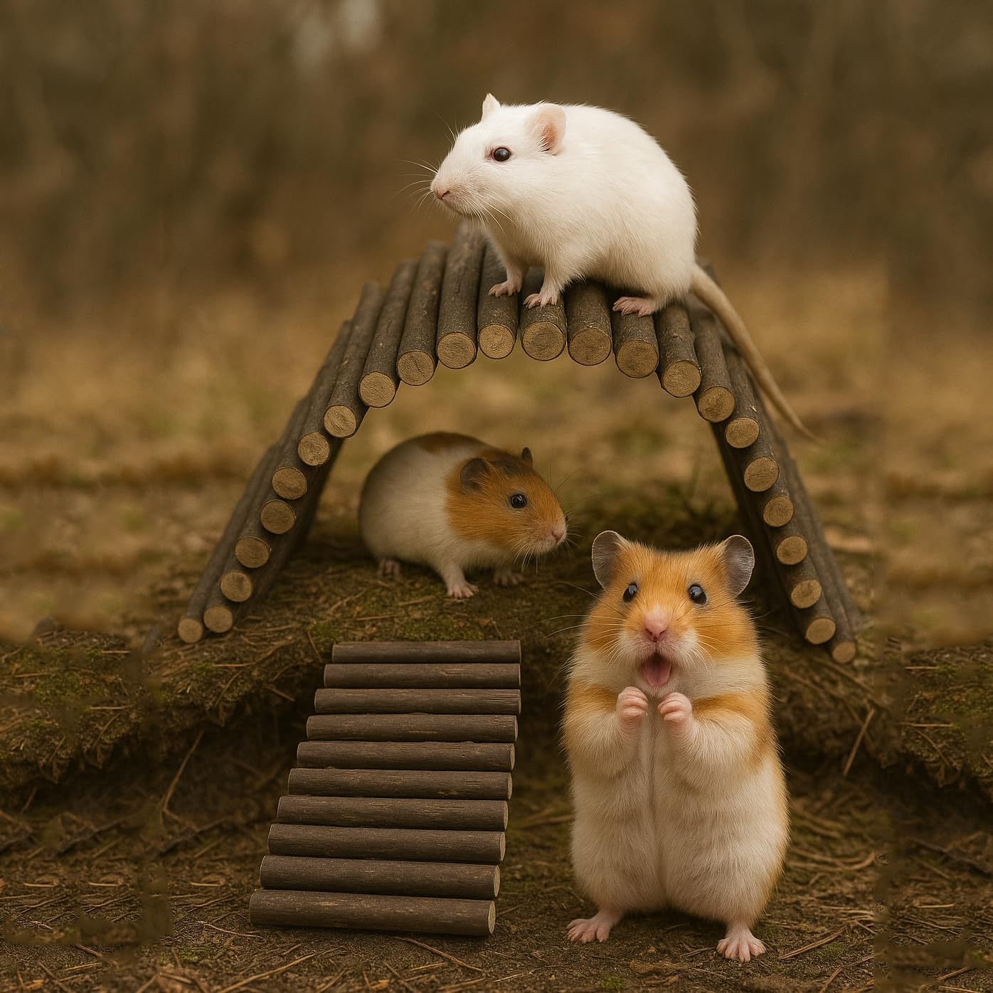 SIMENA Wooden Hamster Suspension Bridge Toy, Hamster Fencing, Natural Climbing Ladder for Dwarf Hamsters, Syrian Hamsters, Mice, Gerbils & Small Pets (Natural, 19.7")