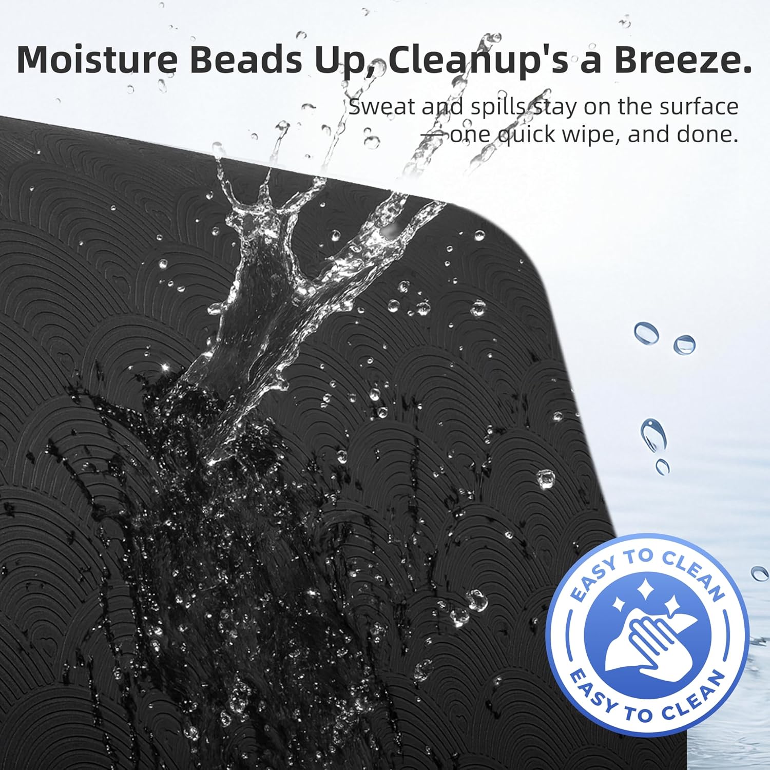 - [Waterproof & Easy to Clean – Fresh in Seconds] Sweat-resistant closed-cell surface wipes clean with a damp cloth. No soaking, no scrubbing—just a fresh mat ready for every session.