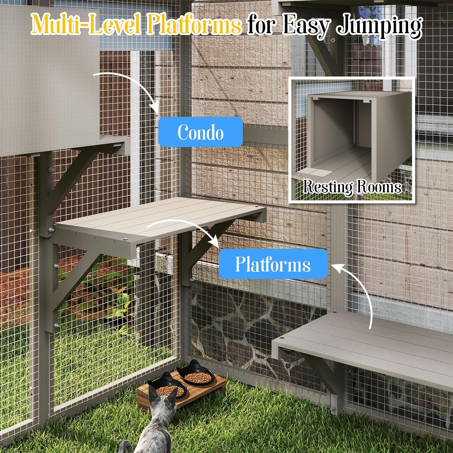 - 【Spacious Walk-In Cat Haven】 Featuring a 57" tall full-size door, our large catio lets adults walk in comfortably to feed, clean, and play. With an overall height of 71", it offers ample space for both you and your cats. Enjoy closer bonding with your cats while keeping care routines simple and accessible every day.