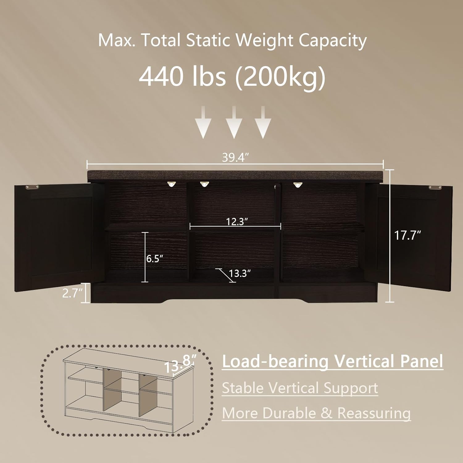 - Product Dimensions : 13.8"D x 39.4"W x 17.7"H