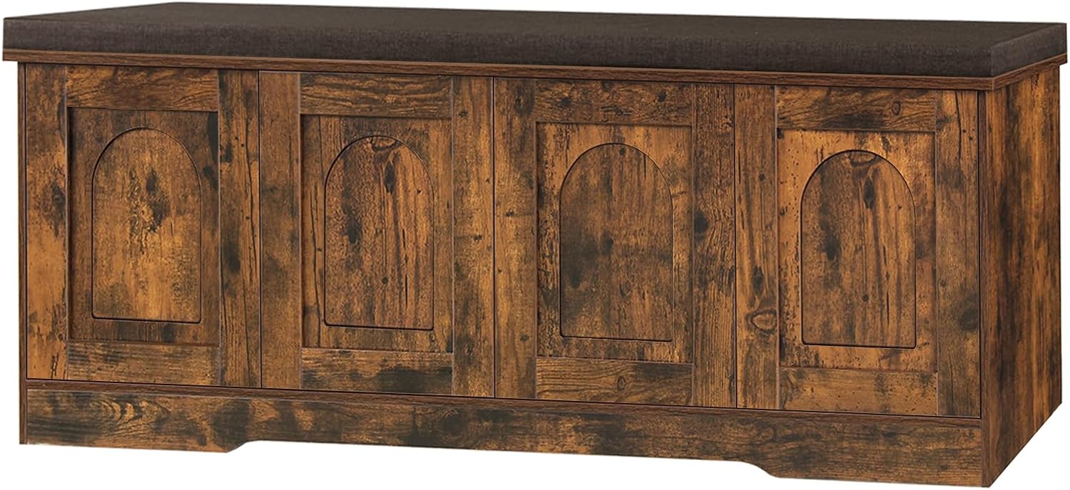DINZI LVJ Shoe Bench, Entryway Storage Bench with Doors, Cushion, 2-Tier Shoe Rack with 8-Cubby, 47.2”L x 13.8”W Shoe Organizer Cabinet, Adjustable Shelf, Living Room, Bedroom, Rustic Brown