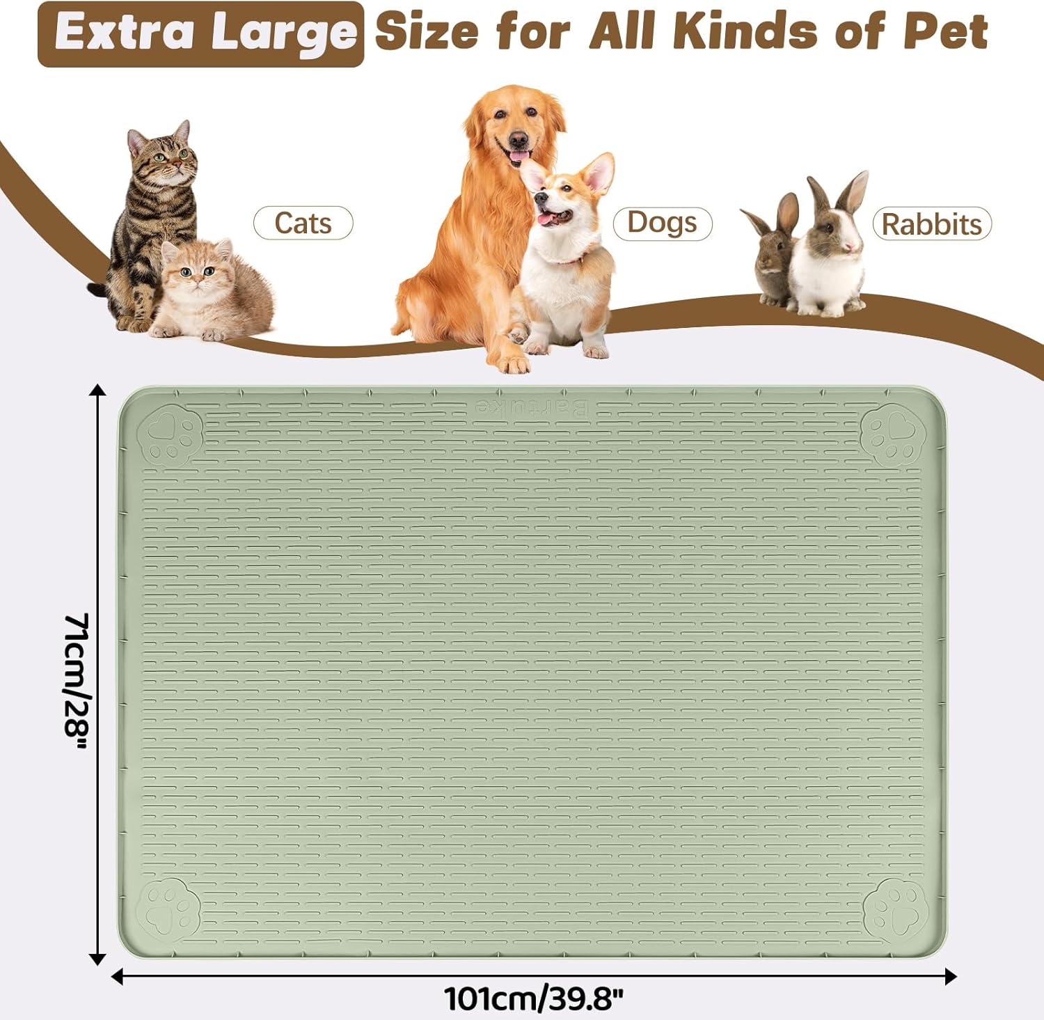 Cat Food Mat, 40" x 28" Extra Large Silicone Pet Feeding Mat with Raised Edge Pet Placemat for Food and Water Bowl Non-Slip, Easy to Clean, Floor Protection (Green)