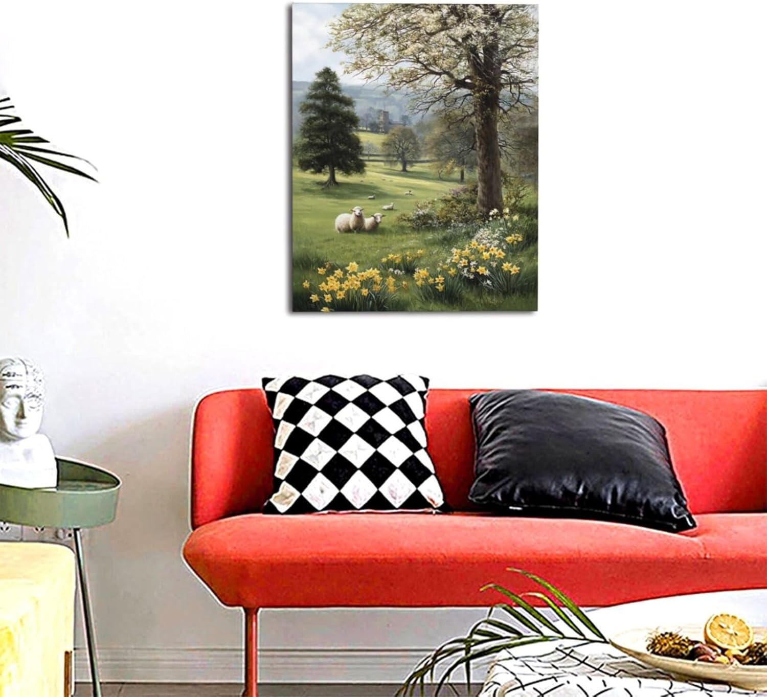 Country Sheep Canvas Wall Decor Farmhouse Rustic Lamb Wildflower Wall Art Nature Countryside Landscape Pictures Painting Print Framed Artwork Decorations for Bathroom Living Room Bedroom 16"x20"