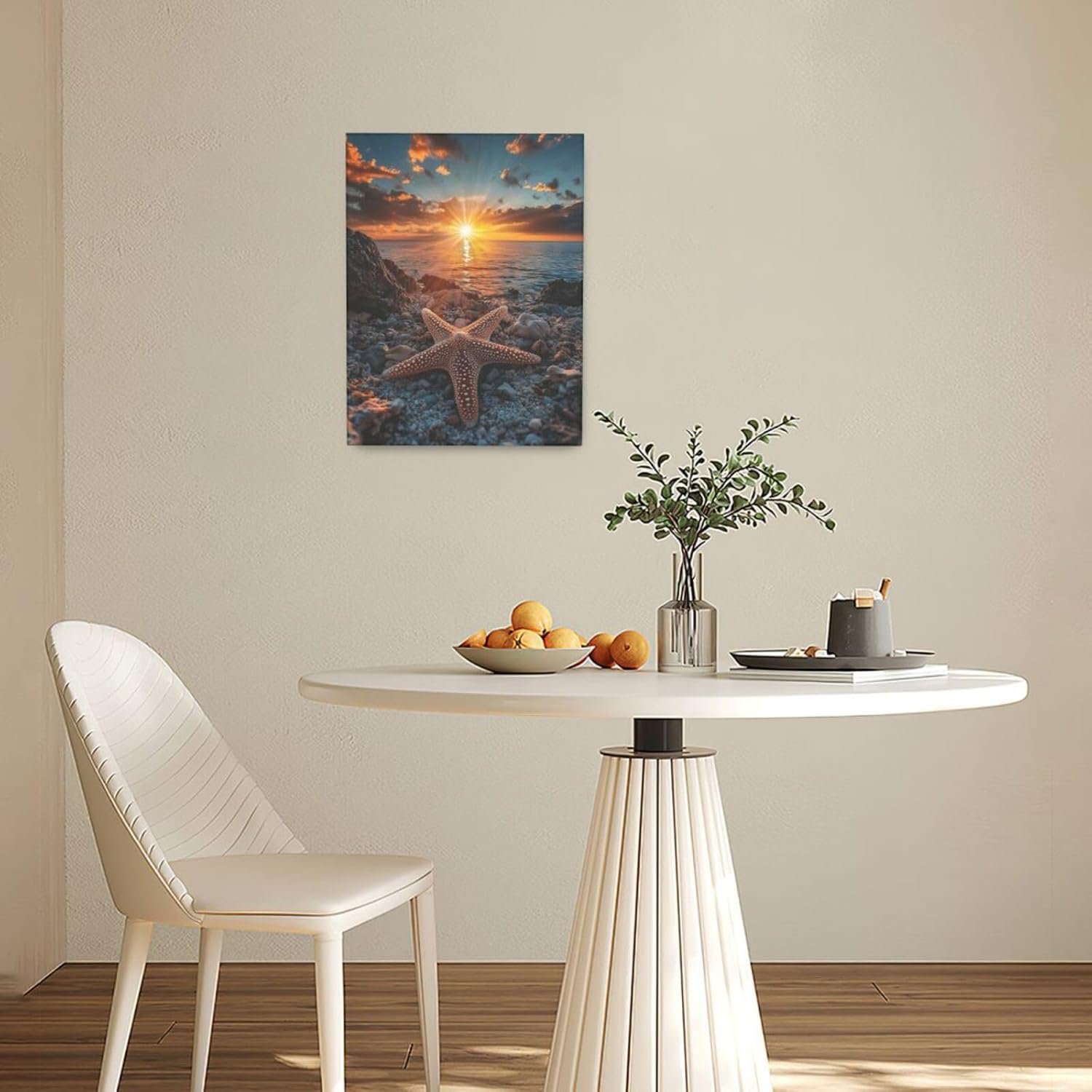 Beach Starfish Wall Decor Ocean Starfish Wall Art Sunset Scenery Coastal Theme Pictures Canvas Nature Seascape Painting Print Framed Artwork Decorations for Home Bathroom Living Room Bedroom Office 12"x16"