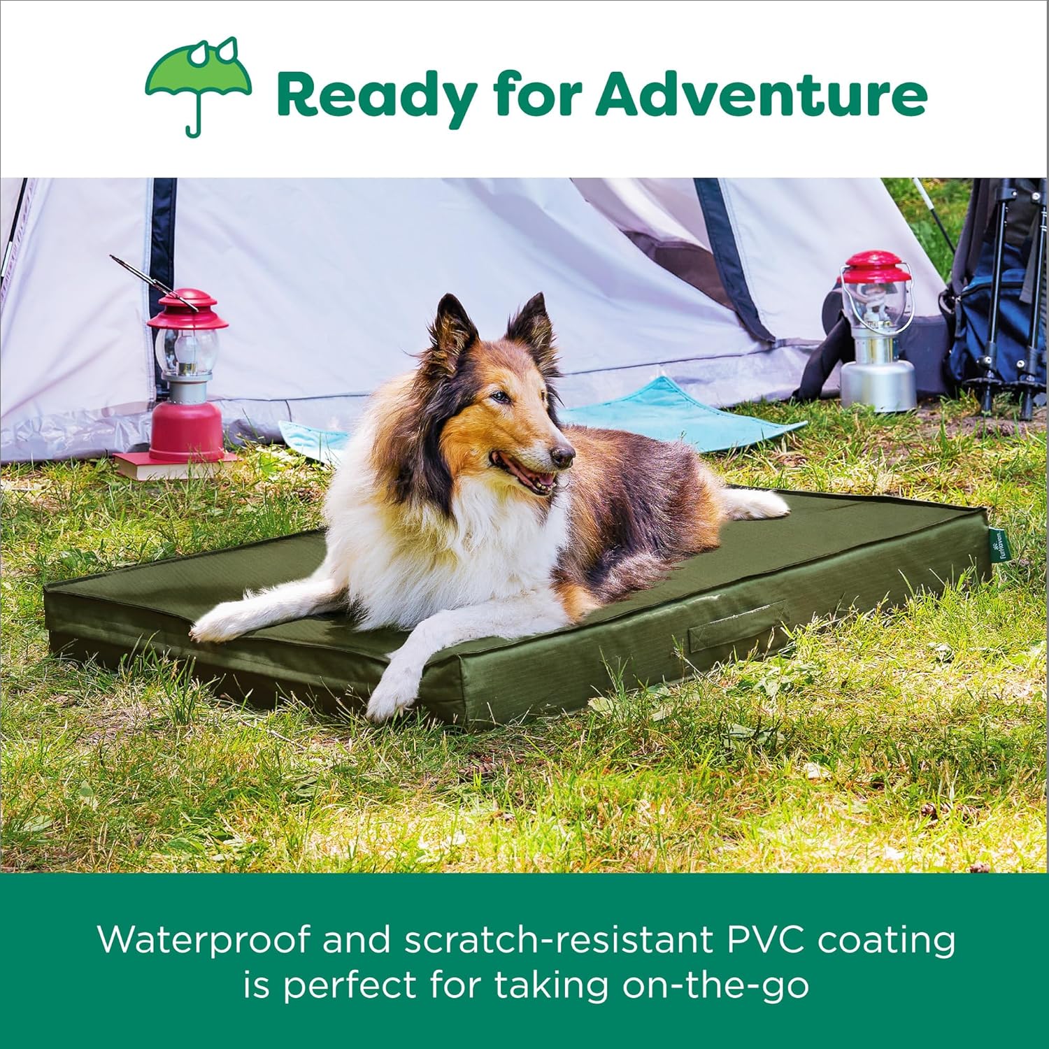 FurHaven Cooling Dog Bed – XL Foam Mattress for Joint Pain Relief, Waterproof Liner, Removable Washable Cover, Durable for Outdoor Use, Deluxe Grid Indoor/Outdoor Bed – Green, Jumbo