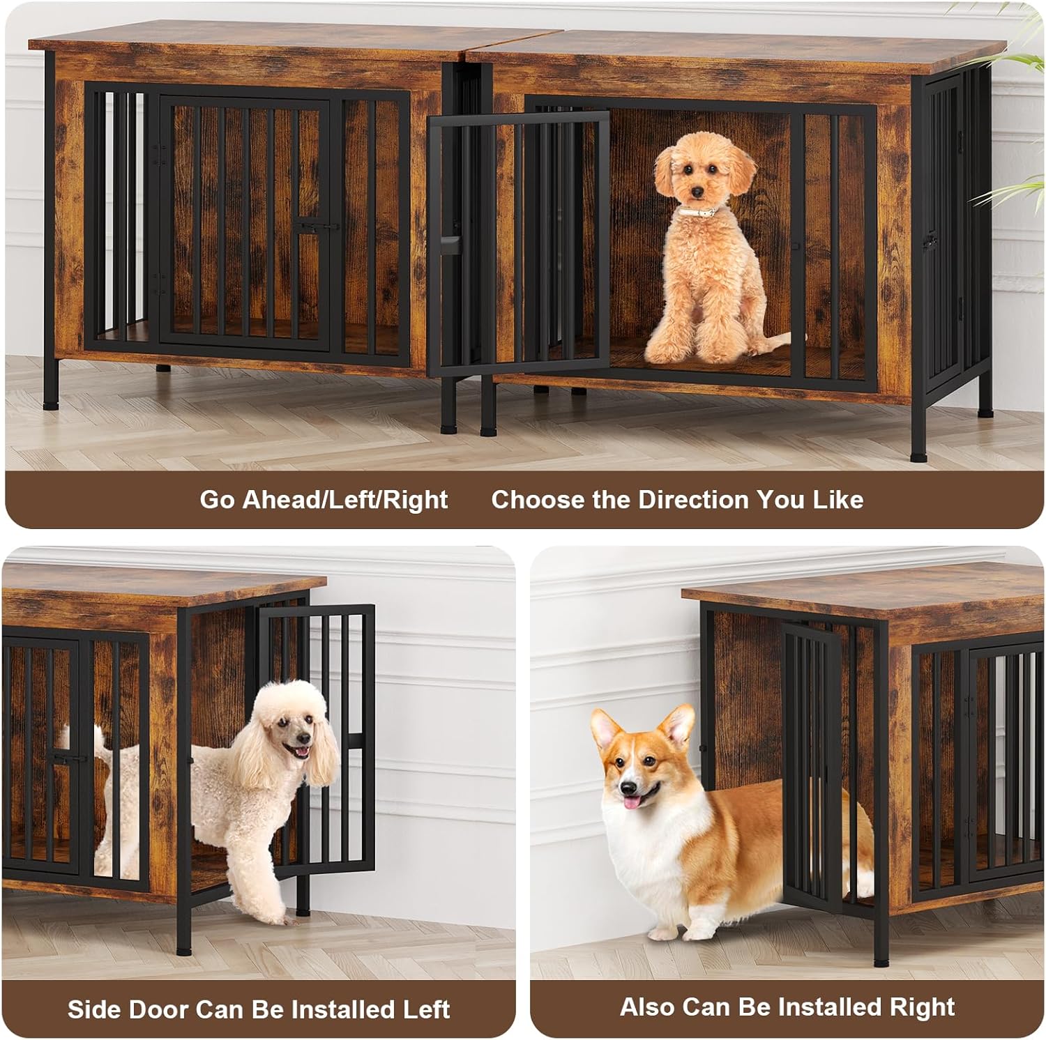 • 【Versatile Dog Crate Table】: Brief and retro dog furniture crate is suitable for various decoration styles. It is not only a dog crate for dogs, but also a TV cabinet/side table to place decorations and storage. The huge size ensures dogs have a comfortable and spacious living area, while also maximizing the use of the house's space.