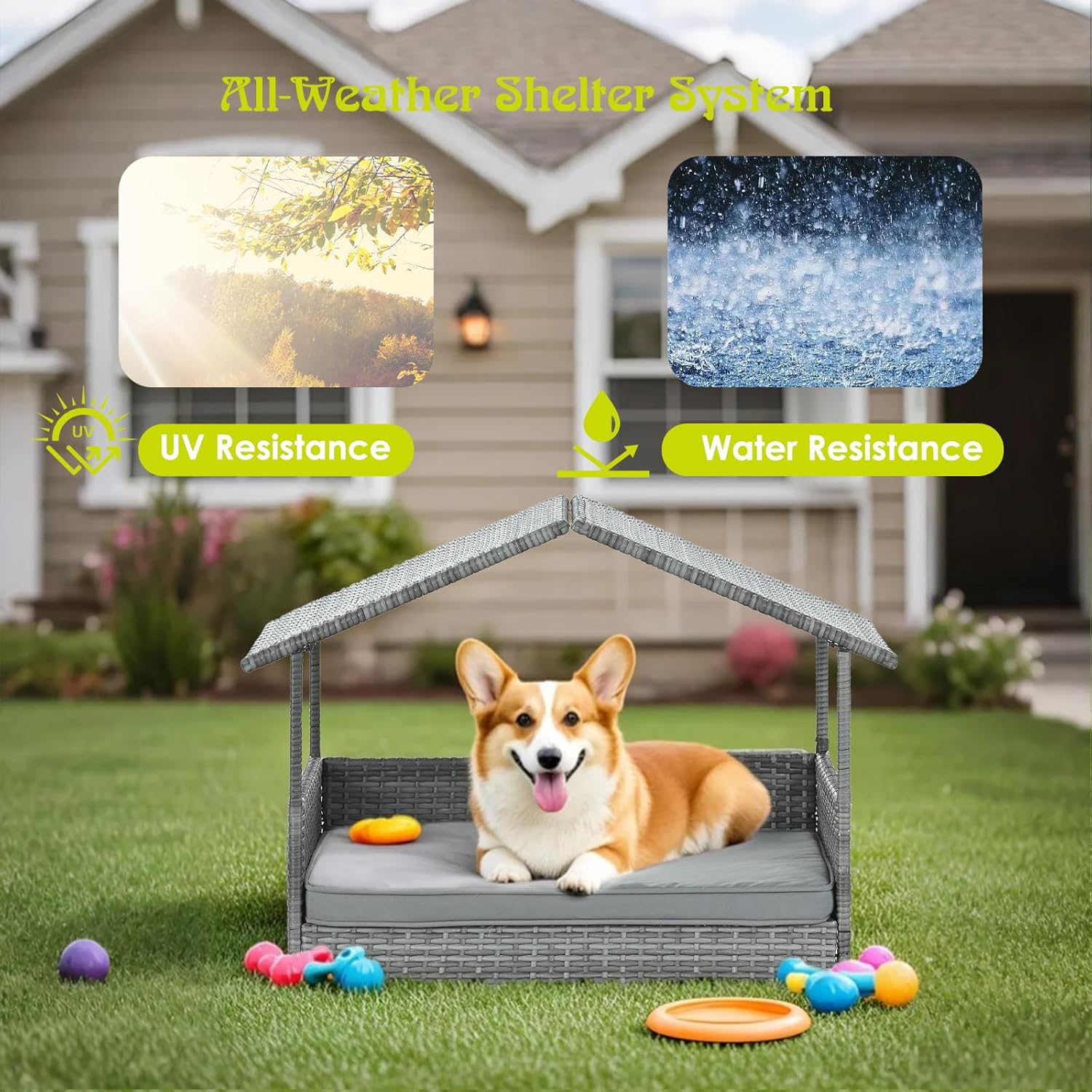 - 【All-Weather Performance Architecture】Elevated base, isolates radiant heat from the ground and accelerates air flow, making your pet more comfortable. 15° inclined PE canopy channels rainwater 50% faster, with corrosion-proof joints– guaranteed 3-year outdoor durability from blizzard to tropical storms.