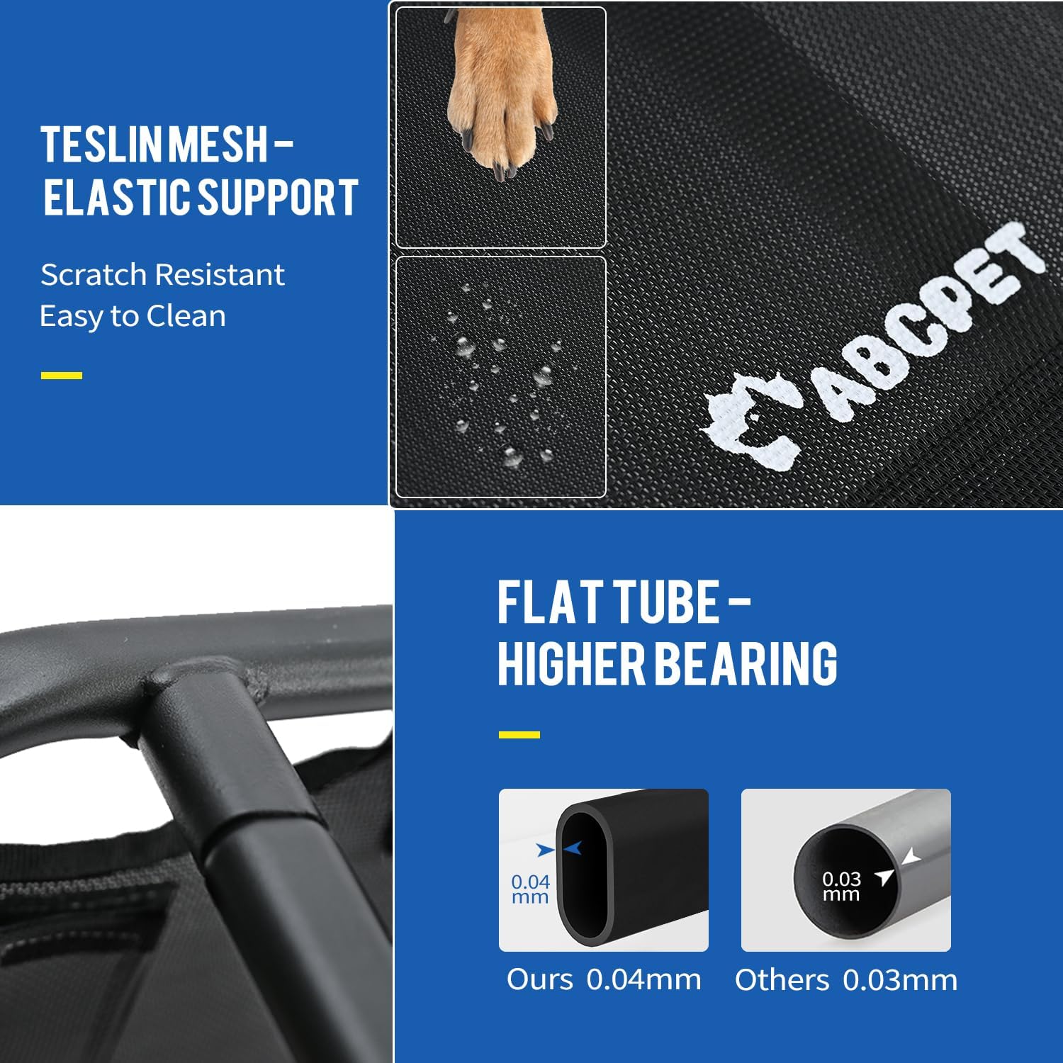 Elevated Dog Beds, Extra Large Raised Dog Cots Outdoor Cooling Dog Bed Waterproof Stable and Easy Assembly, Teslin Fabric with 1.2mm Thick Iron Frame, Breathable, Ultra-Sturdy,Black, 54*37*8.7