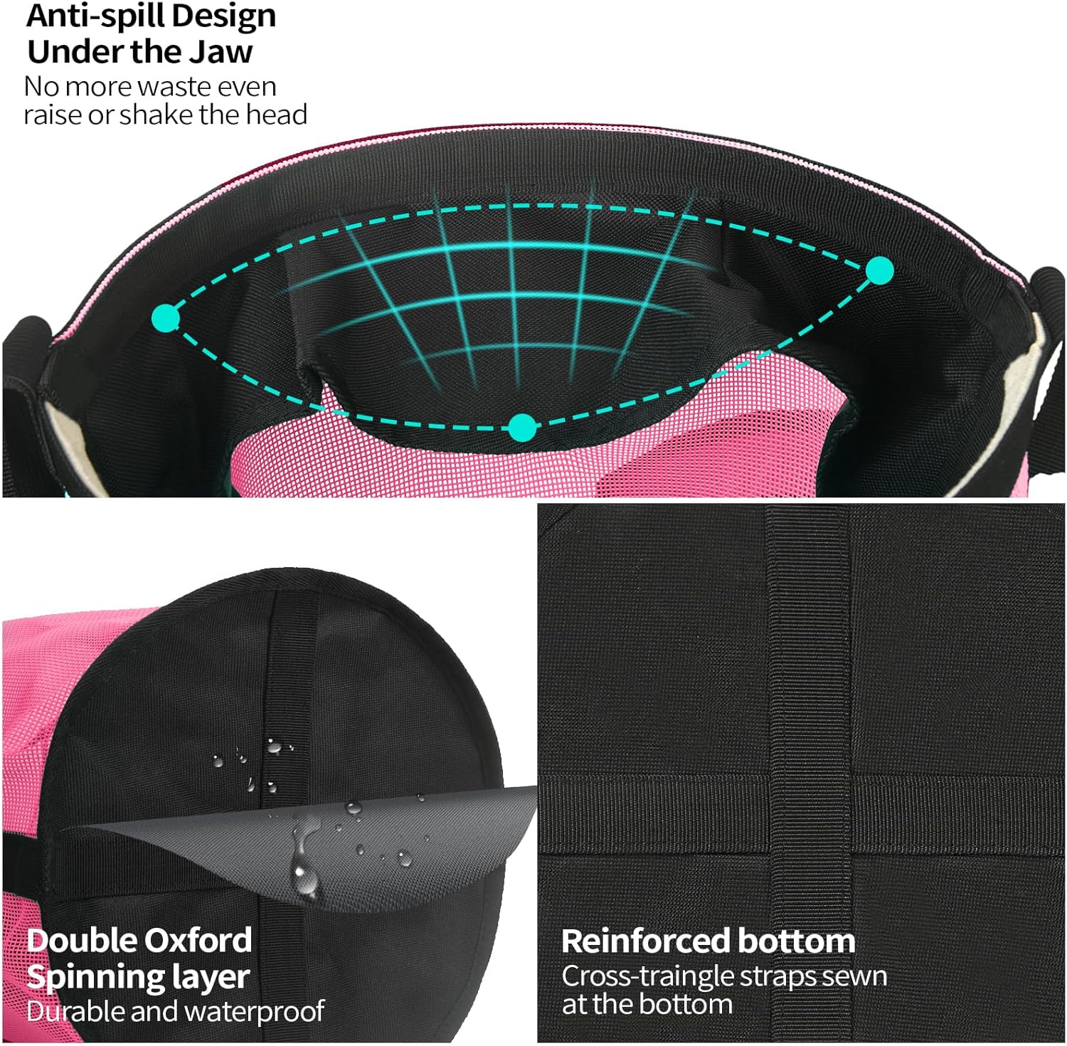 Horse Feed Bag 2 Pcs, Mesh Feed Bags for Horses, Muzzle Feedbag for Feeding Grain, Anti-Spill Design Feeder, Soft Neck Pad Nose Pad, Breathable and Universal Fit (Pink, Pack of 2)