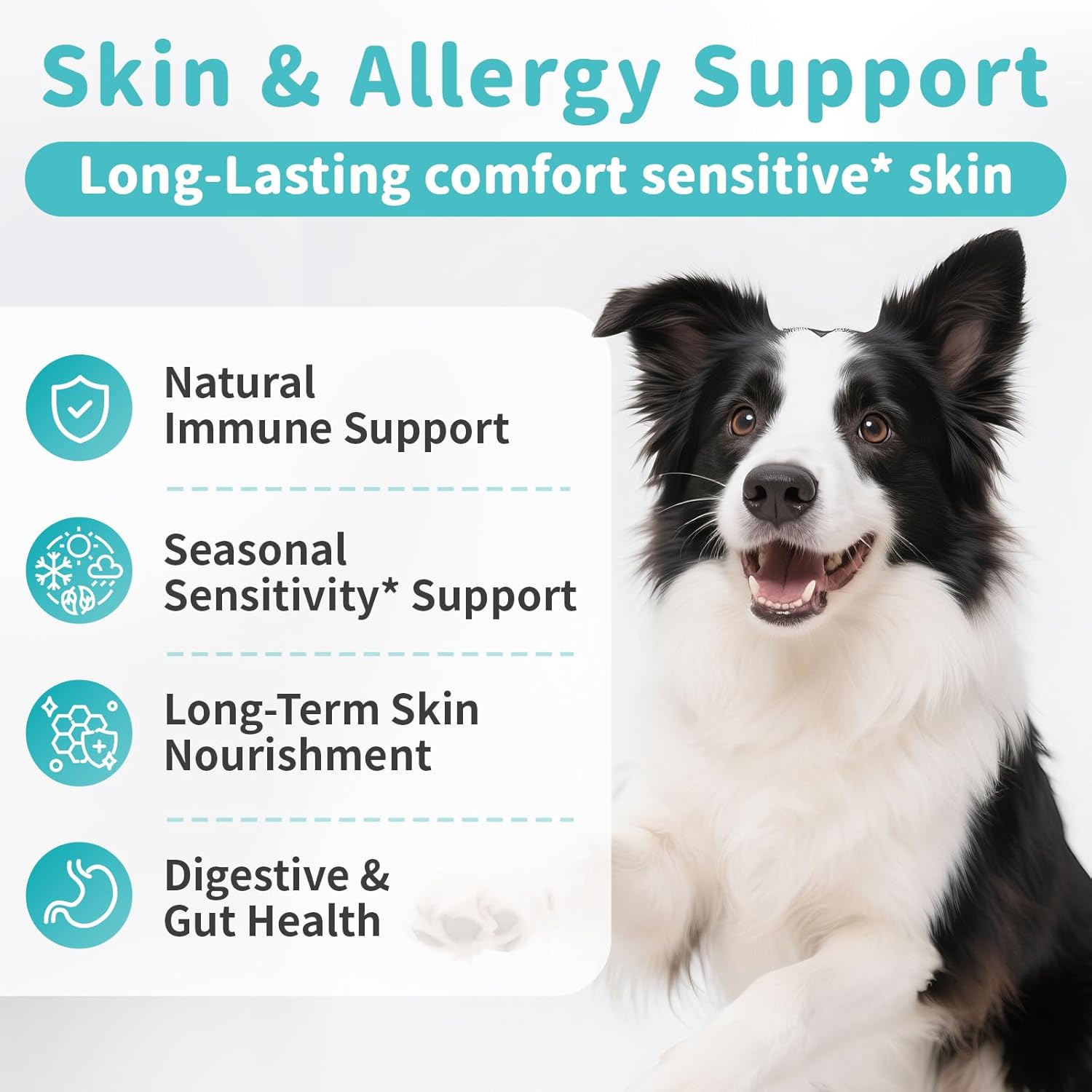- Seasonal Skin Sensitivity Support: Our dog allergy relief products are designed to promote* long-lasting comfort for dogs with sensitive skin. And dog skin care supplement contains a potent combination of turmeric, bee pollen, and dandelion root to soothe skin-related issues associated with seasonal allergies. This blend helps to maintain normal skin health and comfort